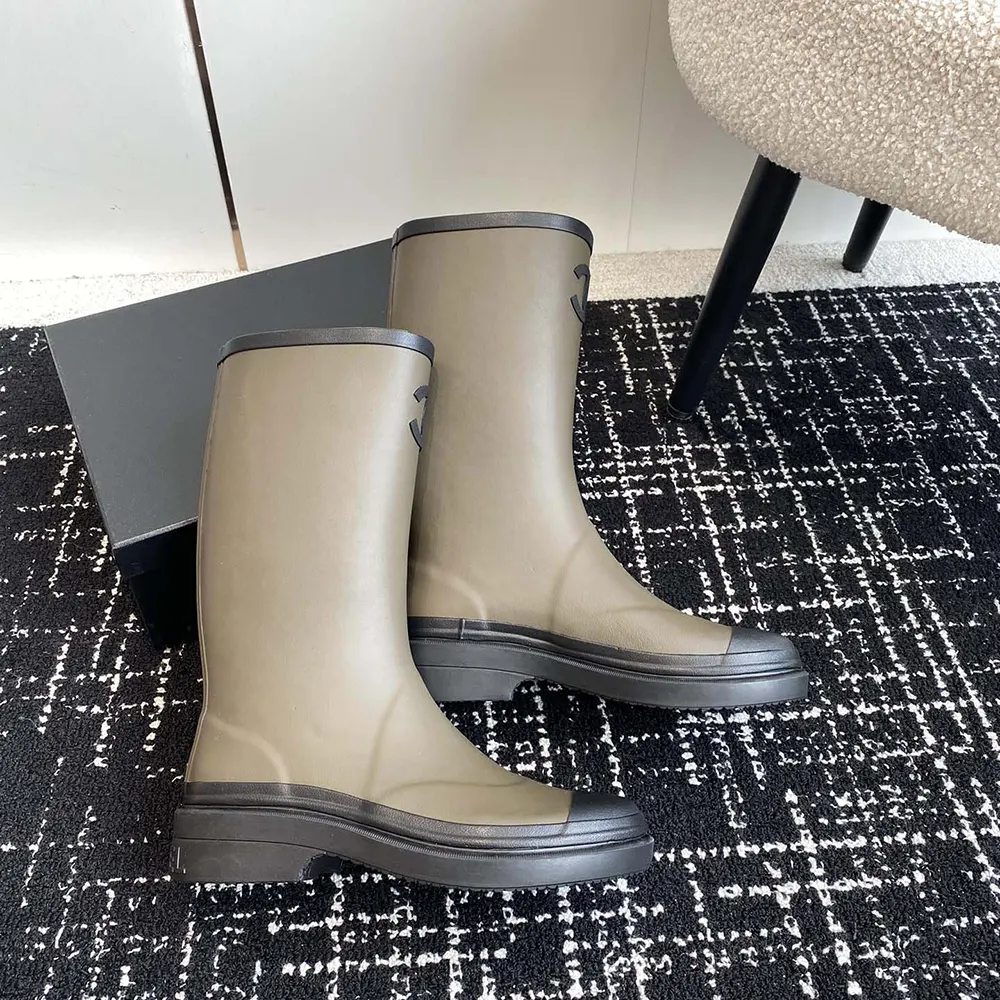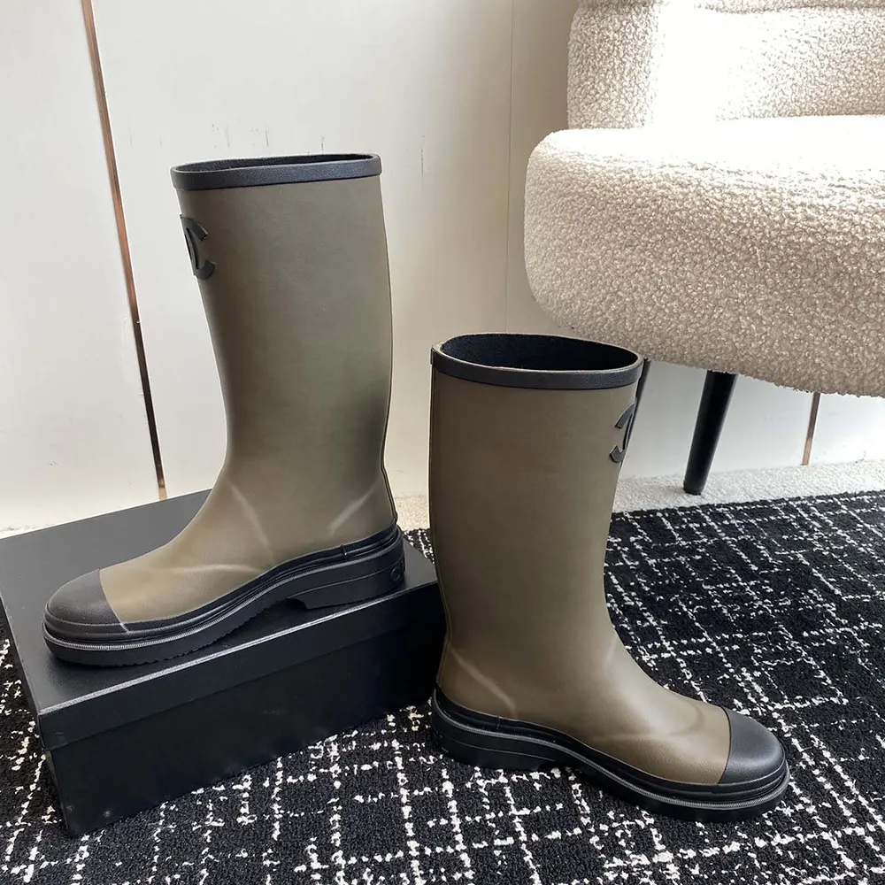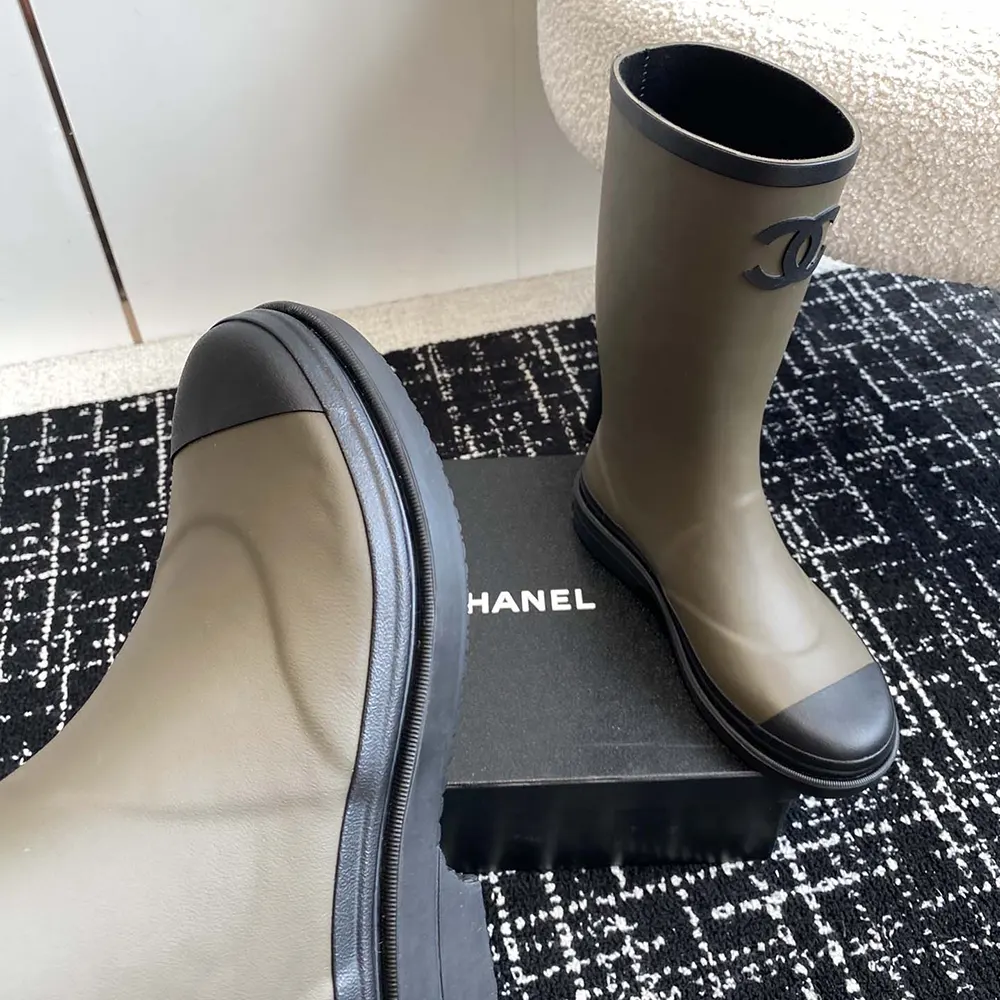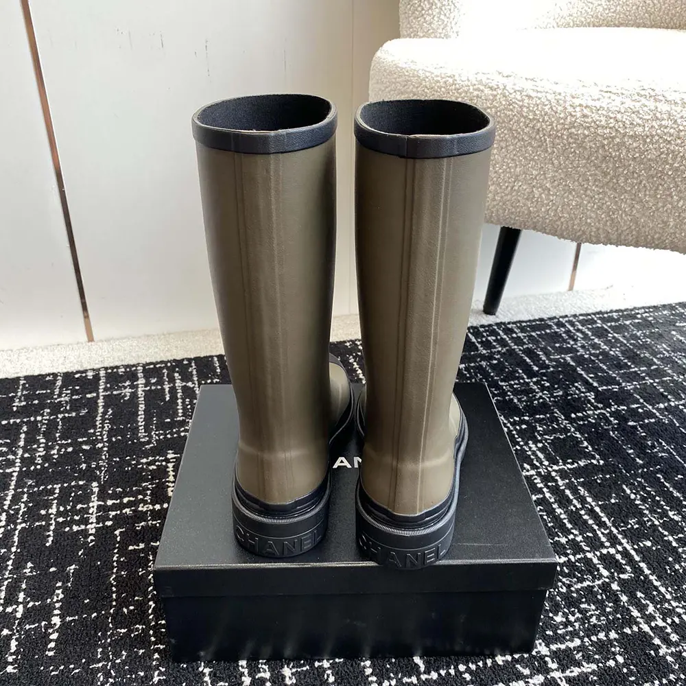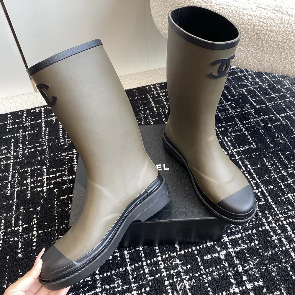 Chanel Women CC Monogram Bicolor Rain Boots-Dark Green