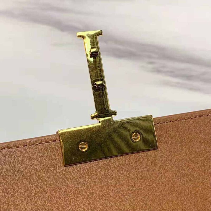 - Diese glamouröse Tasche ist mit Ziegenleder gefüttert und verfügt über einen abnehmbaren Riemen zum Tragen über der Schulter oder quer über den Körper. Sie zeigt das emblematische Design und die charakteristischen Details, die die Capucines zu einem neuen Klassiker machen.