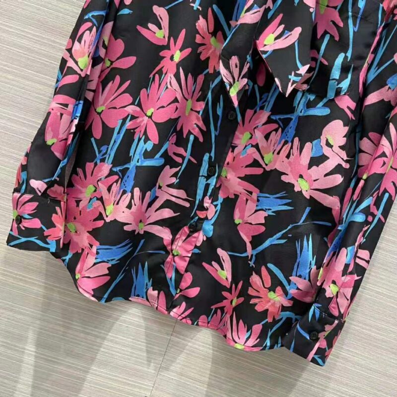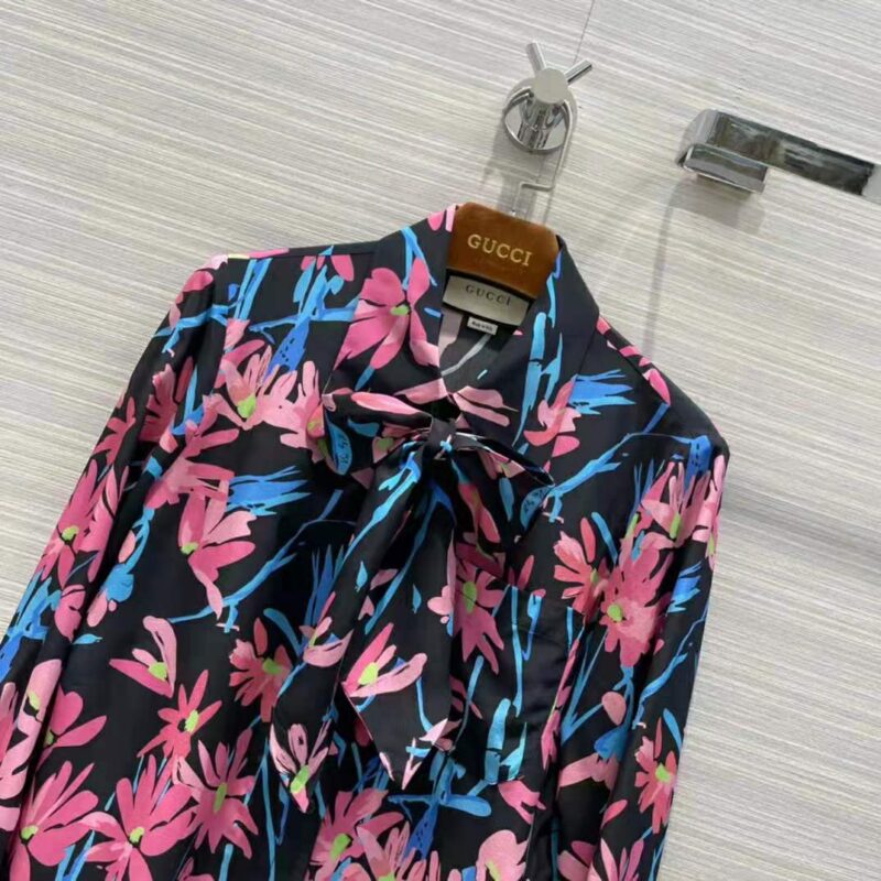 Gucci Women Ken Scott Print Silk Shirt Point Collar Front Pocket