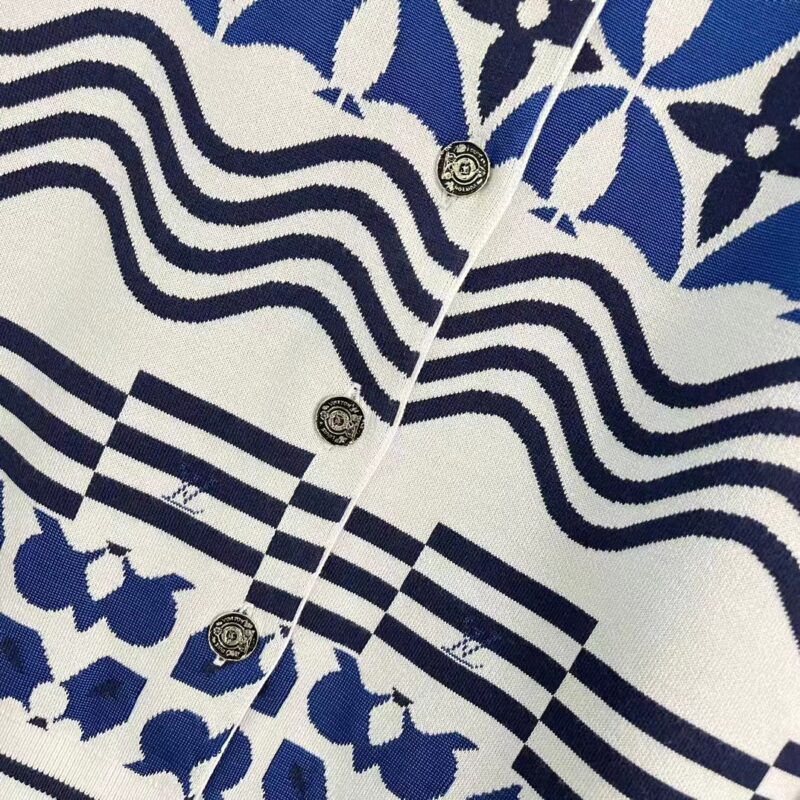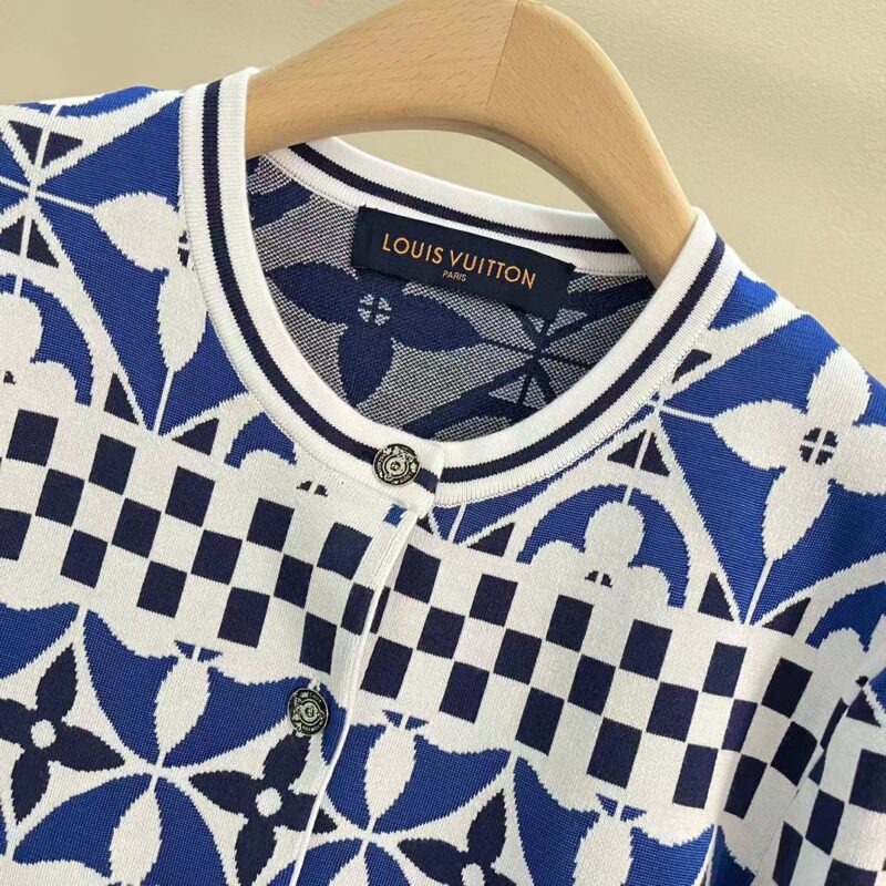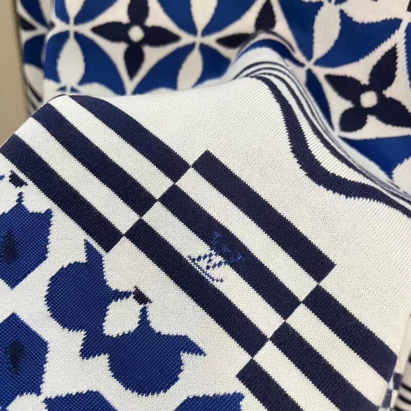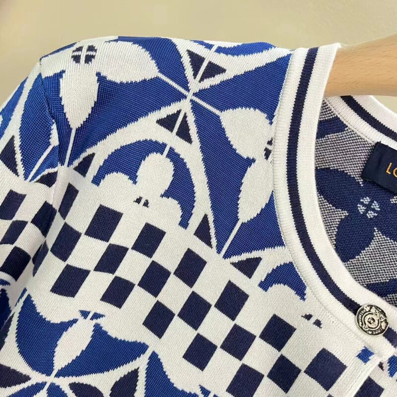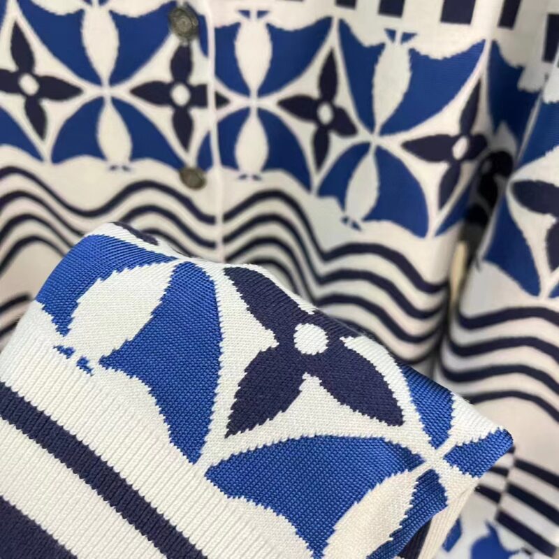 Louis Vuitton LV Women Monogram Flower Tile Jacquard Cropped Pullover Blue White Regular Fit
