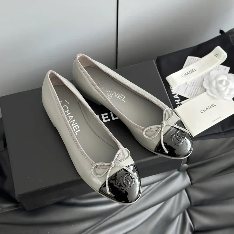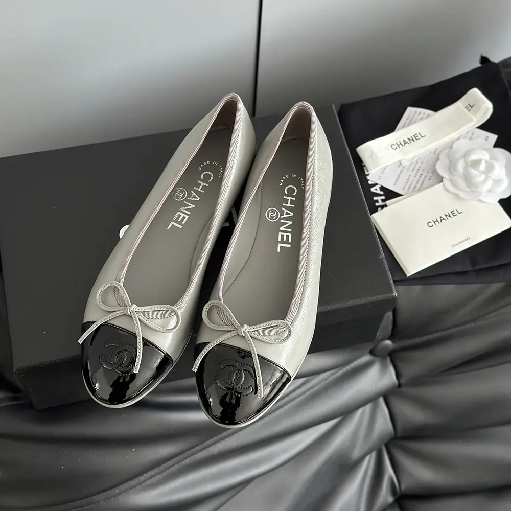 Chanel Women Ballerinas in Lambskin & Patent Calfskin-Grey