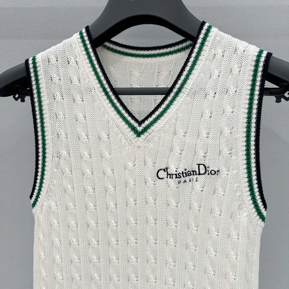 - Part of the Dior Vibe capsule, the sweater vest reimagines sportswear codes with the House’s couture spirit.