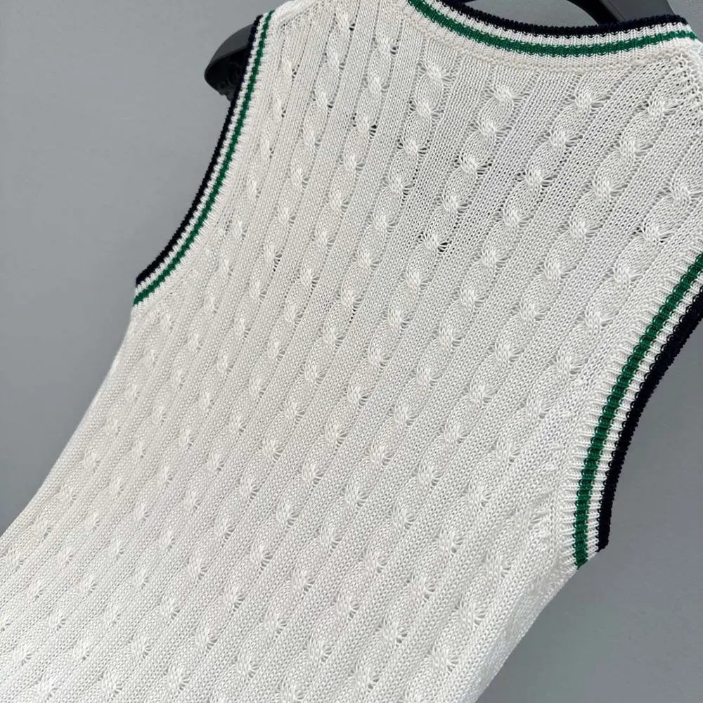 Dior Men Vibe Sweater Vest Ecru Black and Pine Green Cotton and Silk Cable Knit