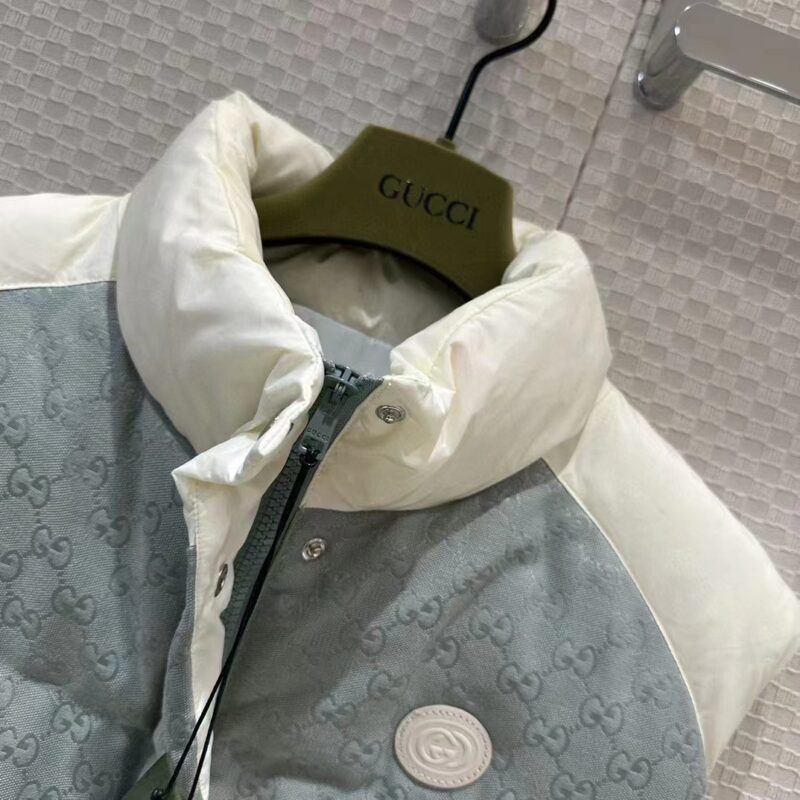 - Presented in GG cotton canvas, this padded gilet is enriched with an oval leather tag with Interlocking G.