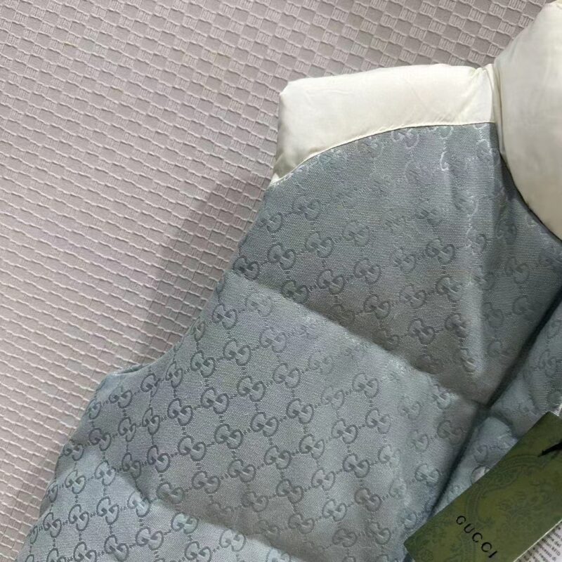 Gucci Women GG Cotton Canvas Padded Vest Blue Lined High Neck Sleeveless Two Side Pockets