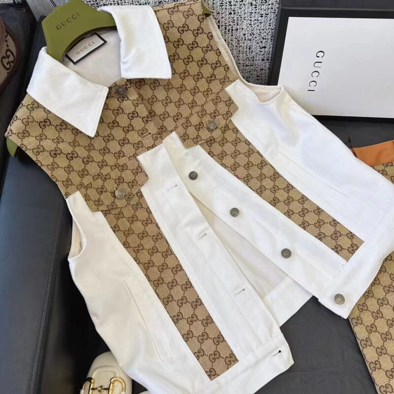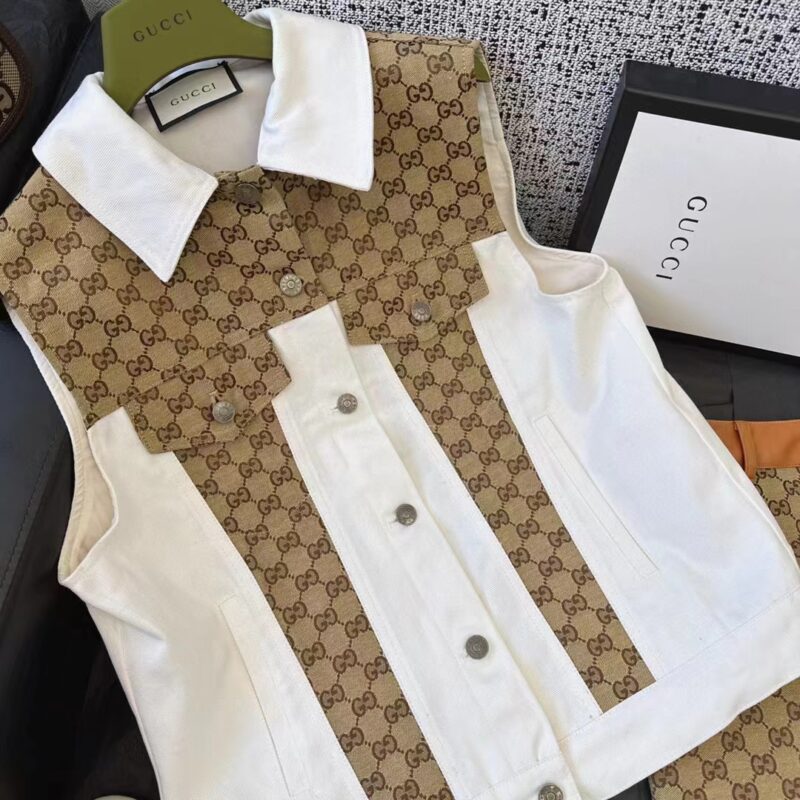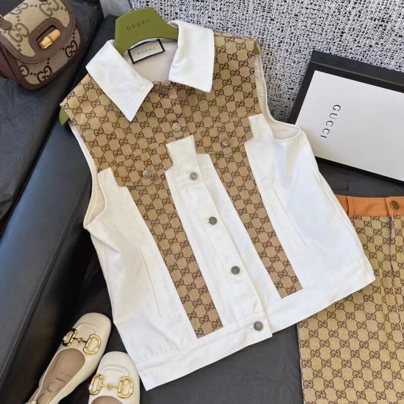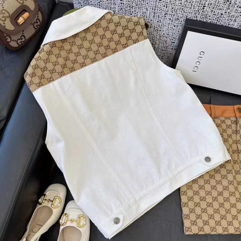 Gucci Women Cady Silk Wool Vest with Double G-White