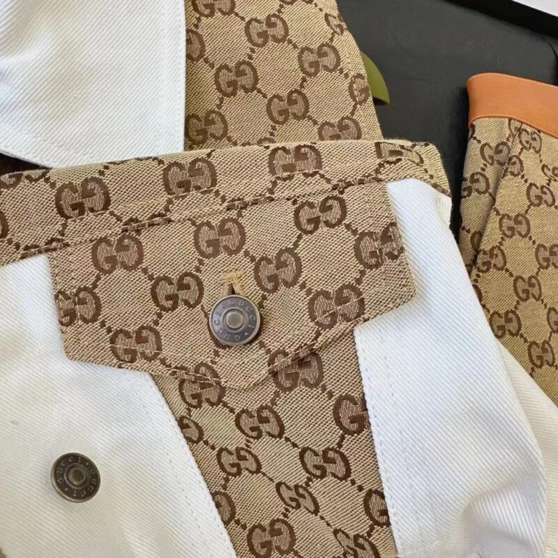 - The track jacket continues to be a silhouette favored by Creative Director Alessandro Michele. The sportswear inspired style is made from a technical jersey fabric and trimmed with Gucci jacquard detail along the sleeves.