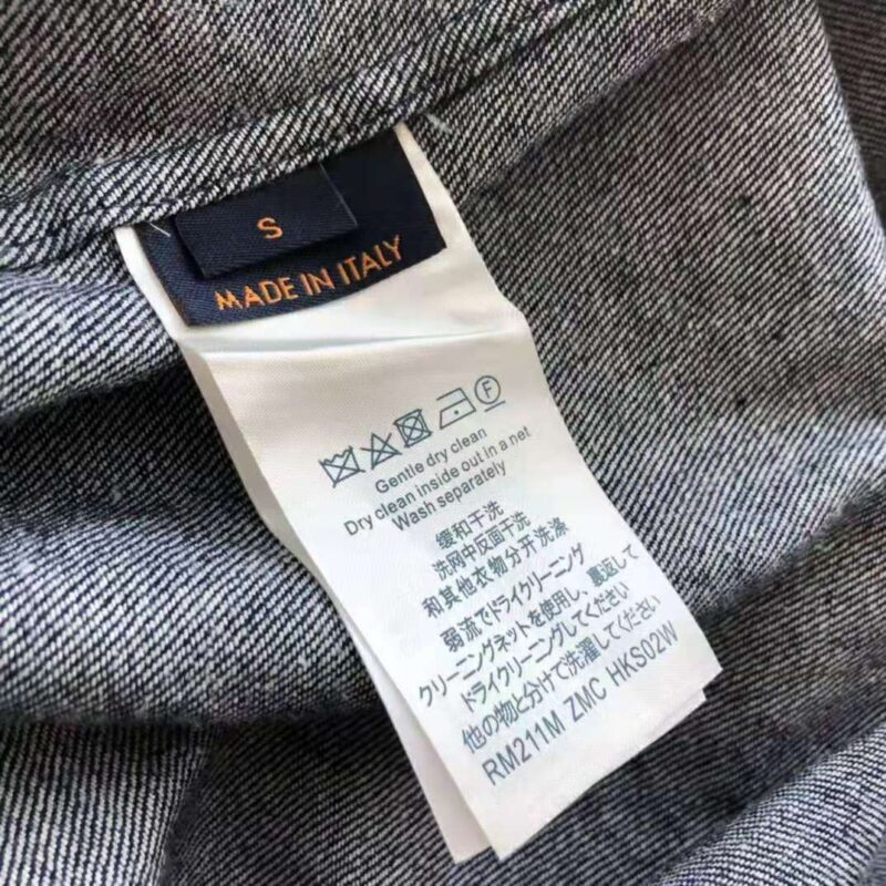 - The back is adorned with a signature staple, while the chest pocket contains a stitched Louis Vuitton Staples Edition label.