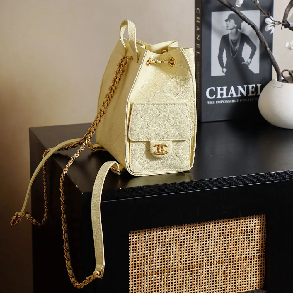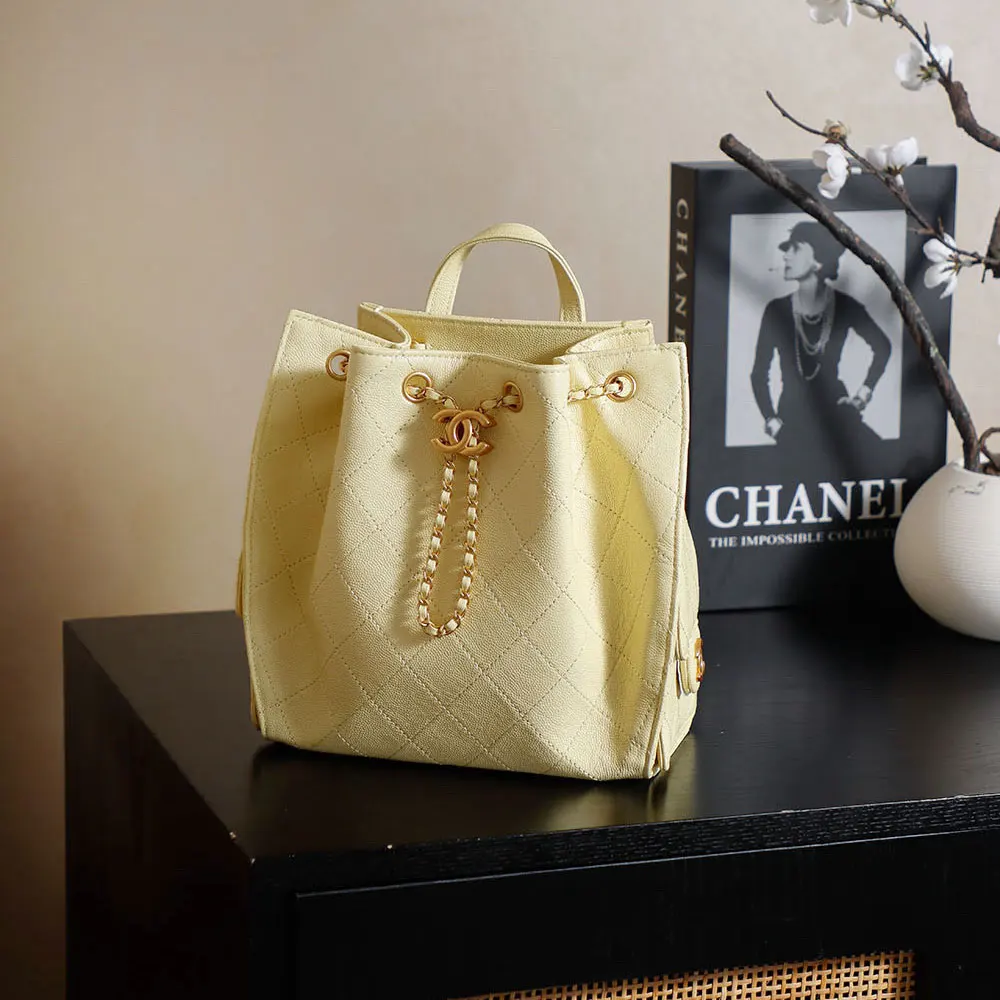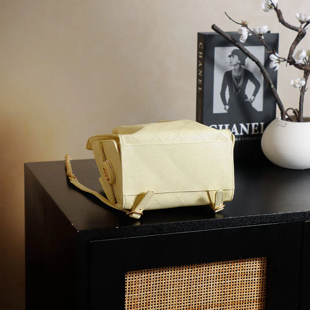 Chanel Women Chanel 25 Medium Backpack Grained Calfskin & Gold-Tone Metal-Yellow