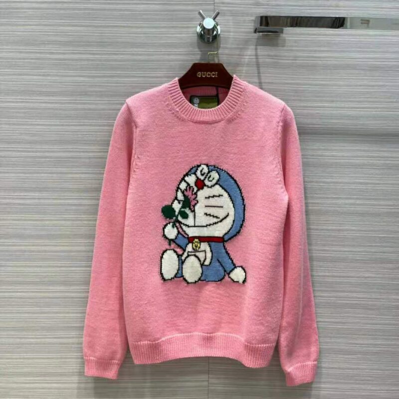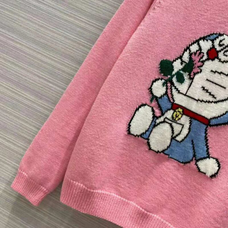 Gucci Women Doraemon x Gucci Wool Sweater Pink Wool Crewneck