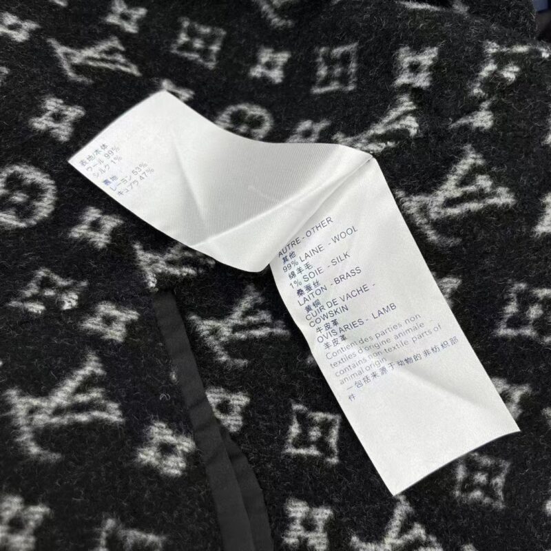 - La parte posterior está adornada con una grapa distintiva, mientras que el bolsillo del pecho contiene una etiqueta Louis Vuitton Staples Edition cosida.