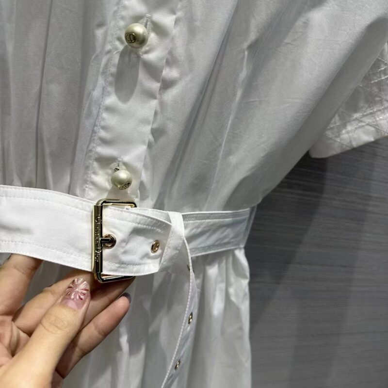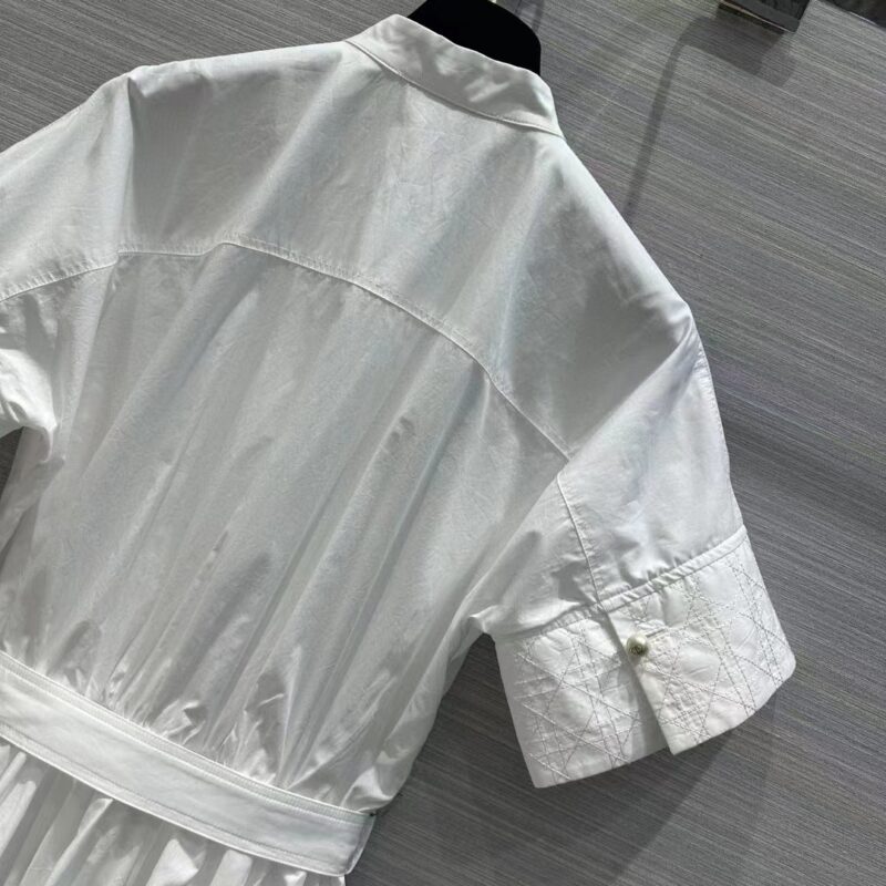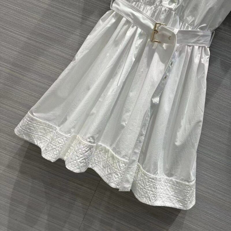 Dior Women CD Mid-Length Belted Macrocannage Dress Ecru Cotton