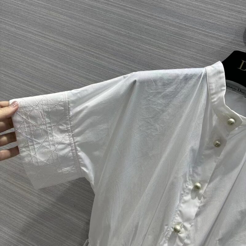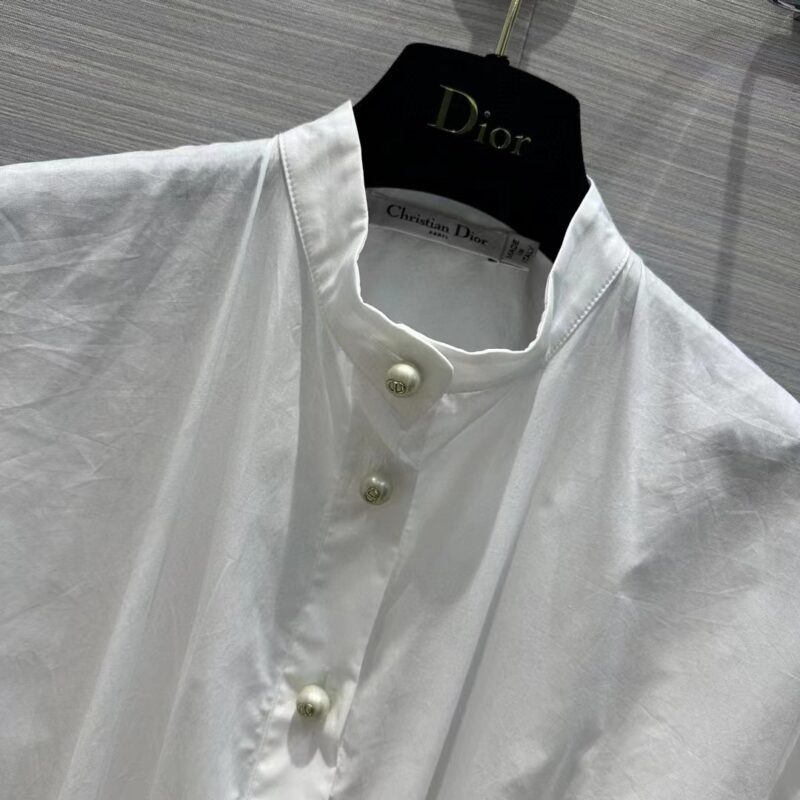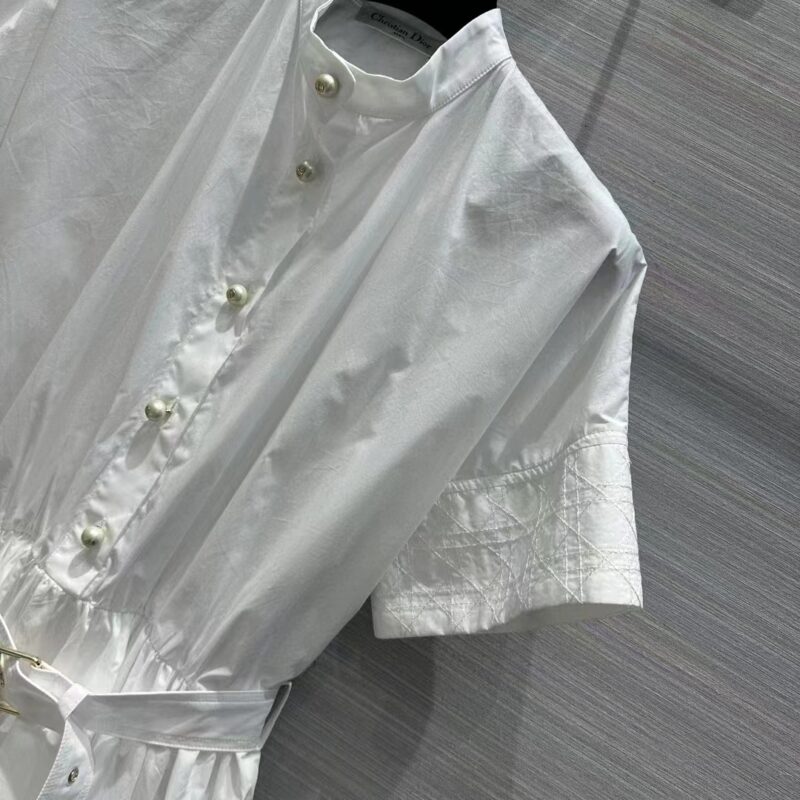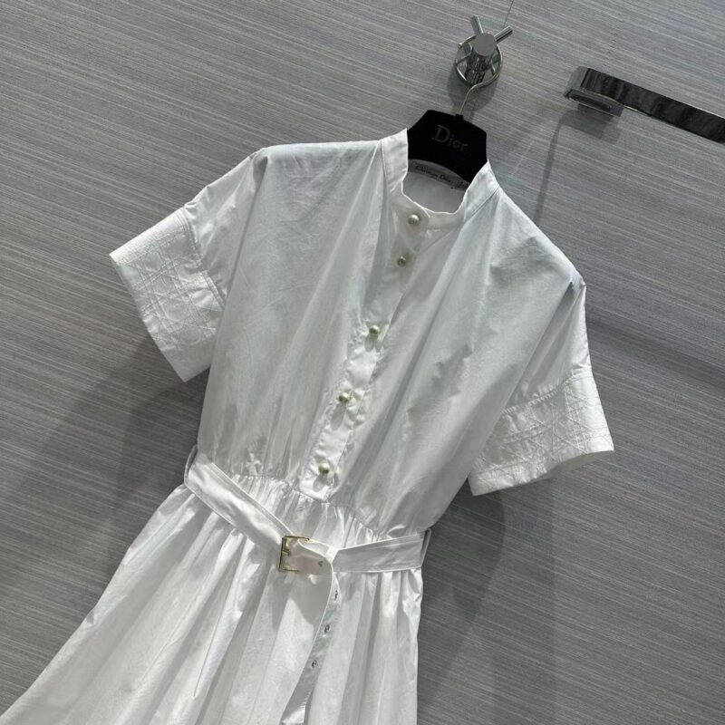 - Completed by an officer collar adorned with a Dior Tribales button, the short-sleeved dress will pair with leather boots for a contemporary look.