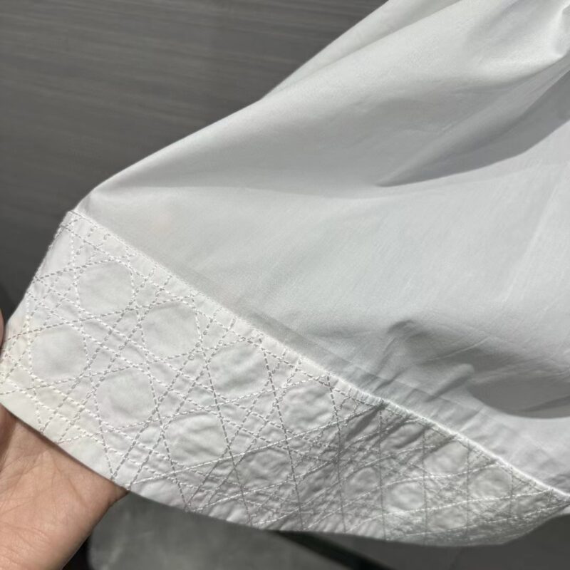 - Crafted in lightweight ecru cotton with a Macrocannage motif, the hallmark Dior piece features a flared cut enhanced by a tonal waistband and side welt pockets.