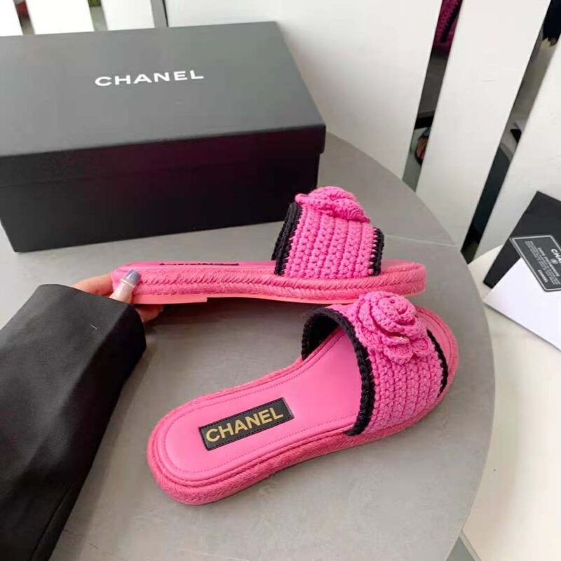 Chanel Mules da donna all'uncinetto avorio e nero tacco 0,5 cm - Rosa