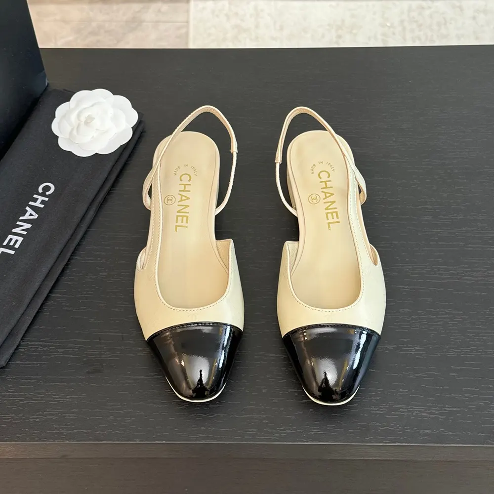 Chanel Slingback da donna in pelle di capra grosgrain-bianco