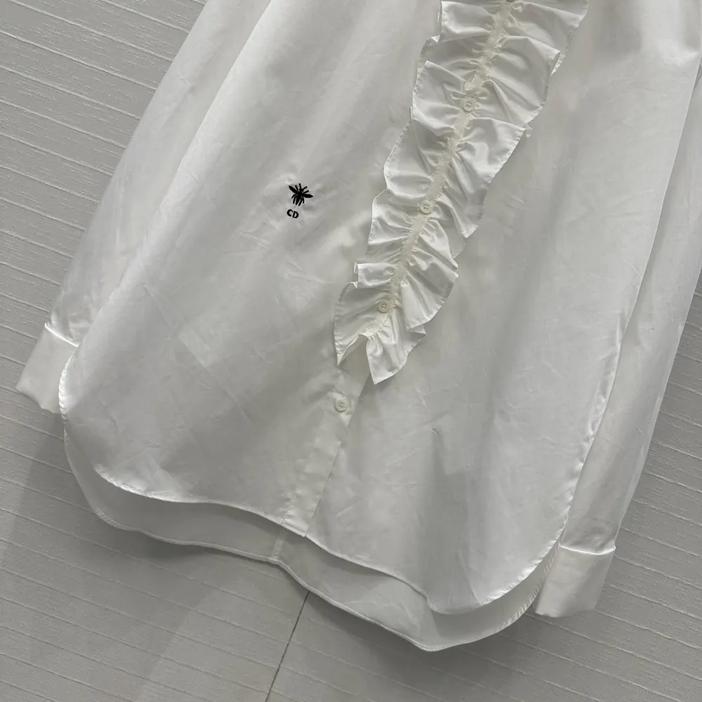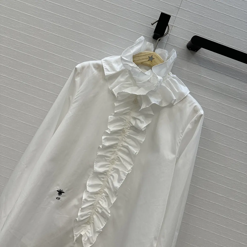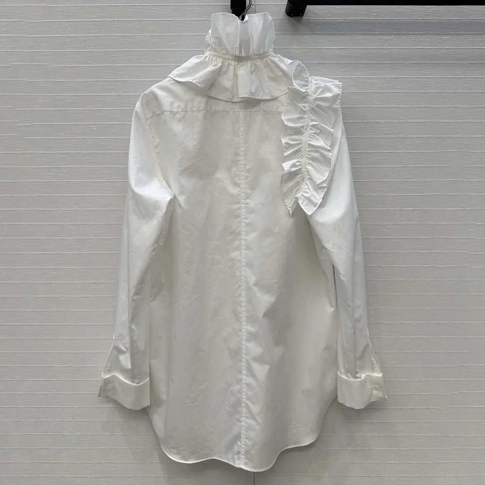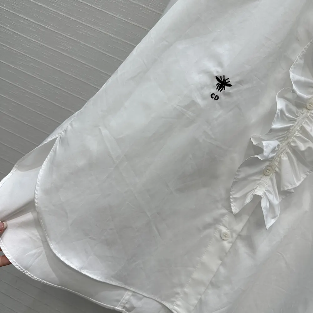 Dior Women Blouse with Removable Ruched Collar White Cotton Poplin