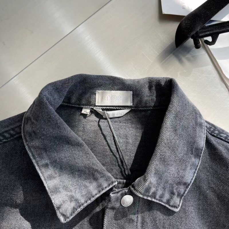 Camicia da donna Dior CD in twill di cotone nero effetto vintage con effetto laser-sbiadito, denim pesante