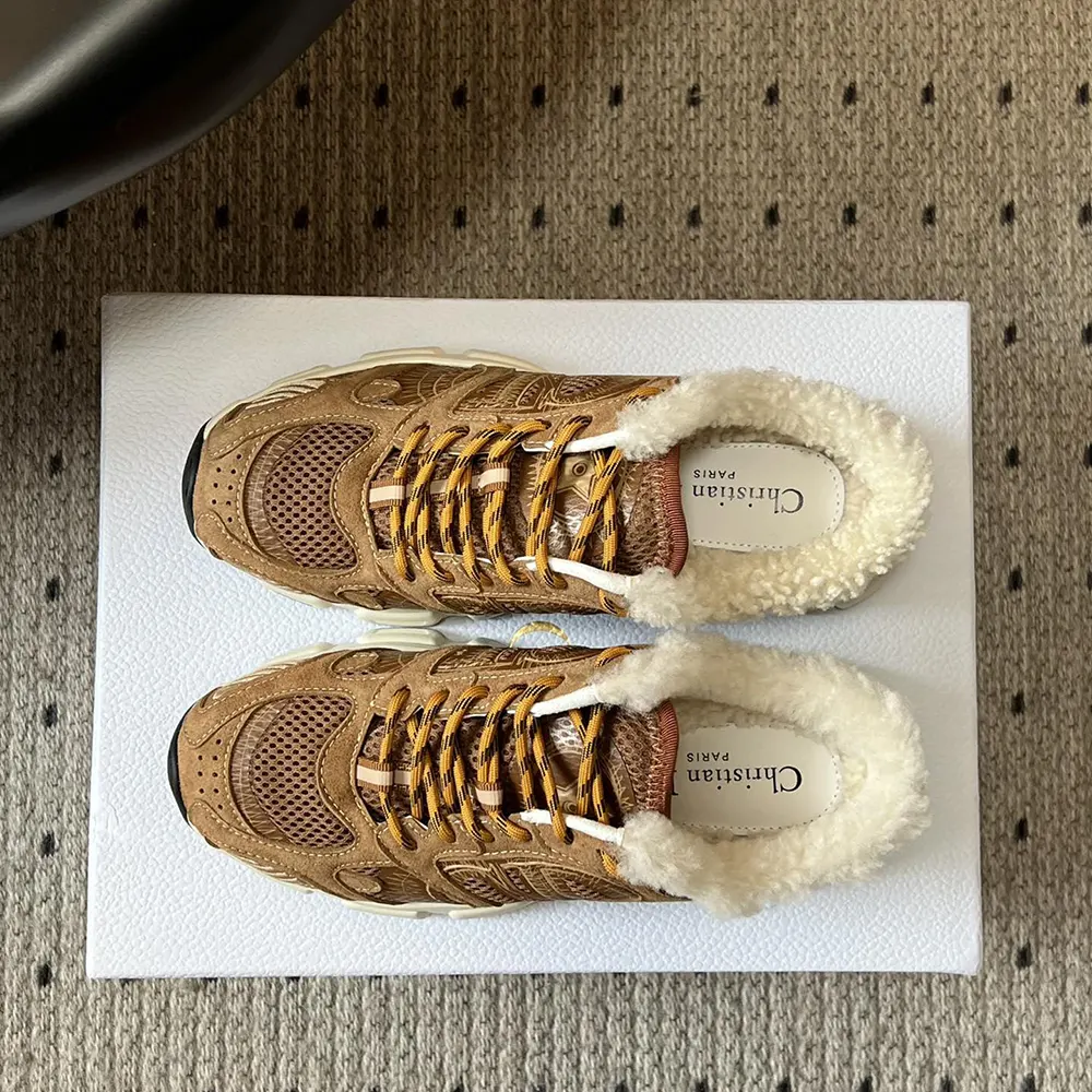 Dior Women DiorAlps Dior Chrono Sneaker Camel Mesh and Suede Calfskin