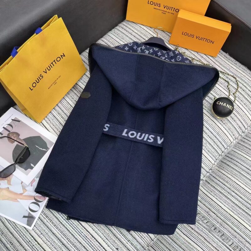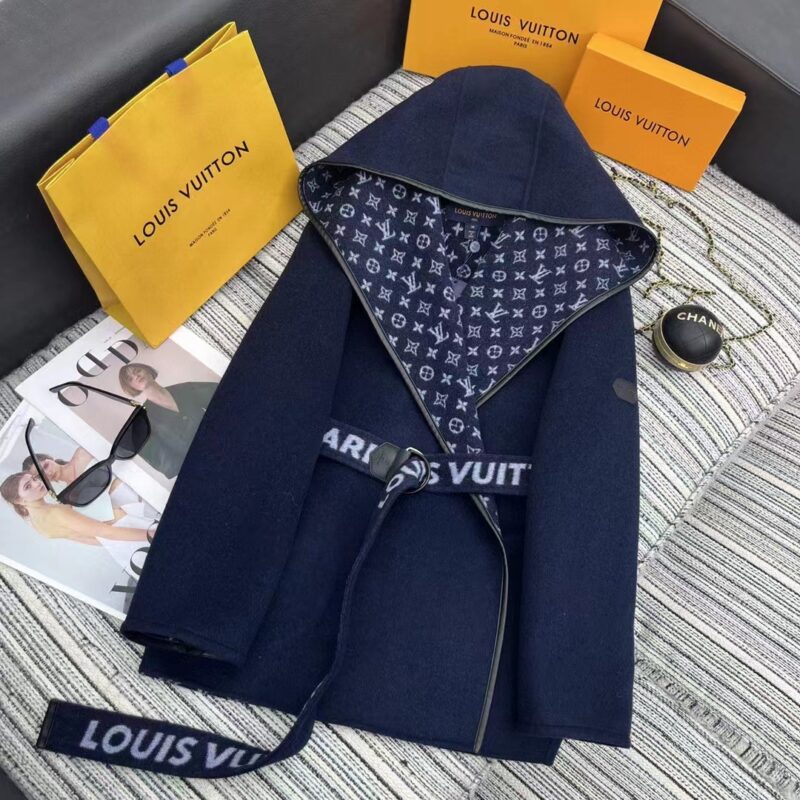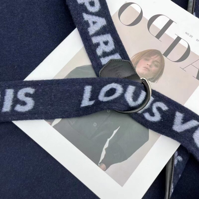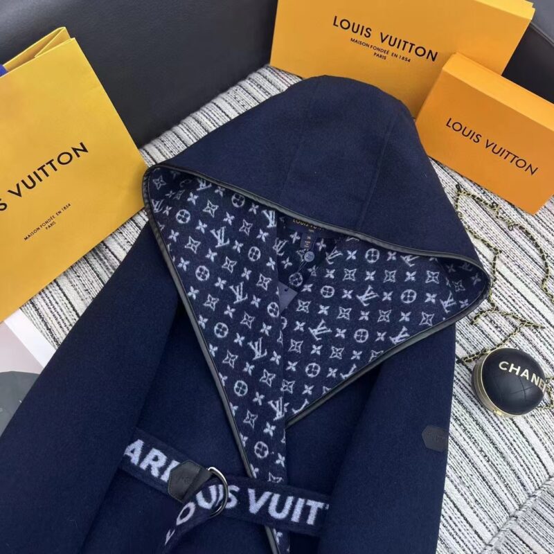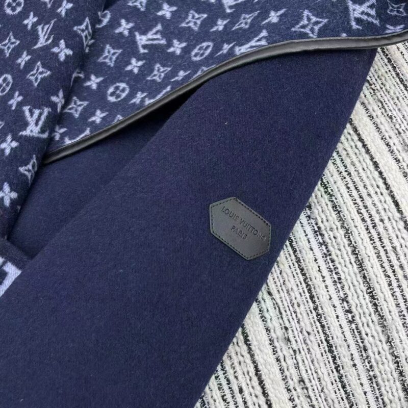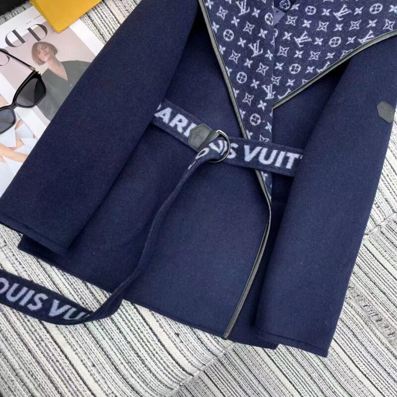 Louis Vuitton LV Women Signature Double Face Short Wrap Coat Wool Silk Blue Regular Fit