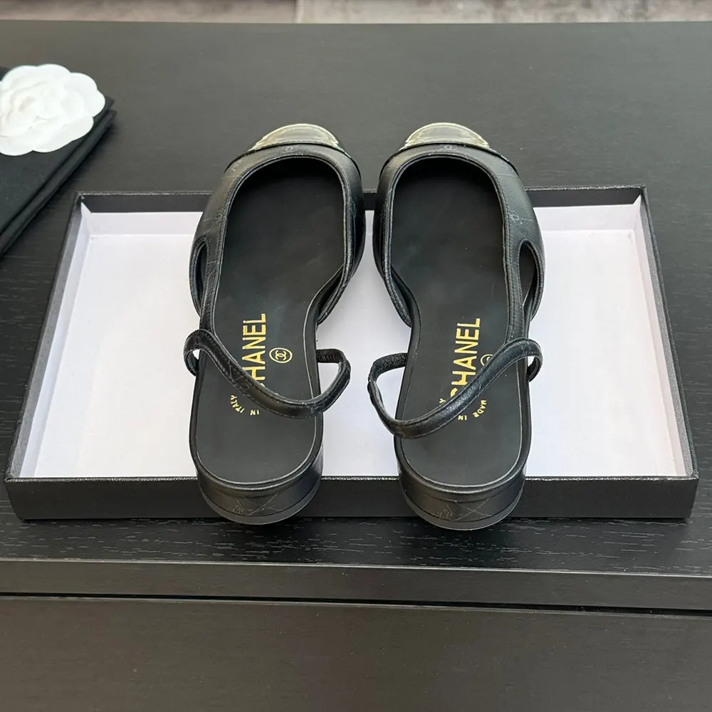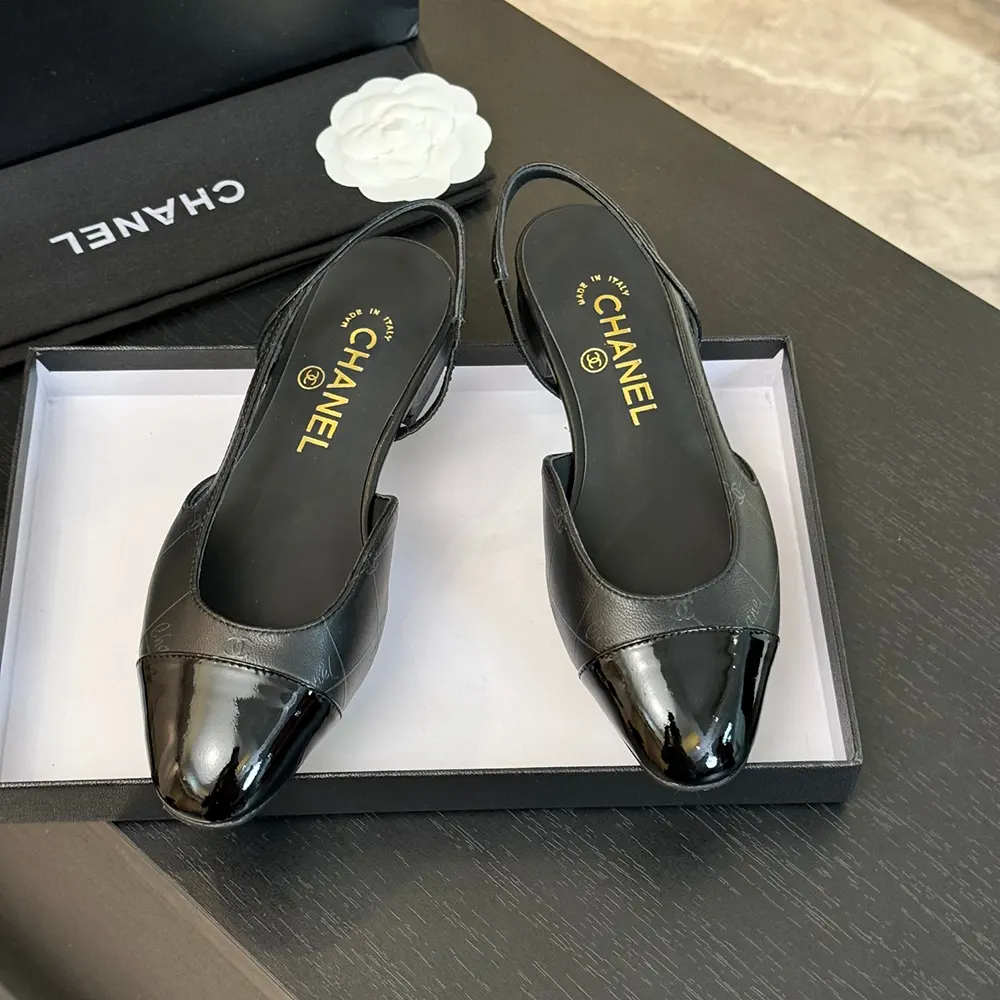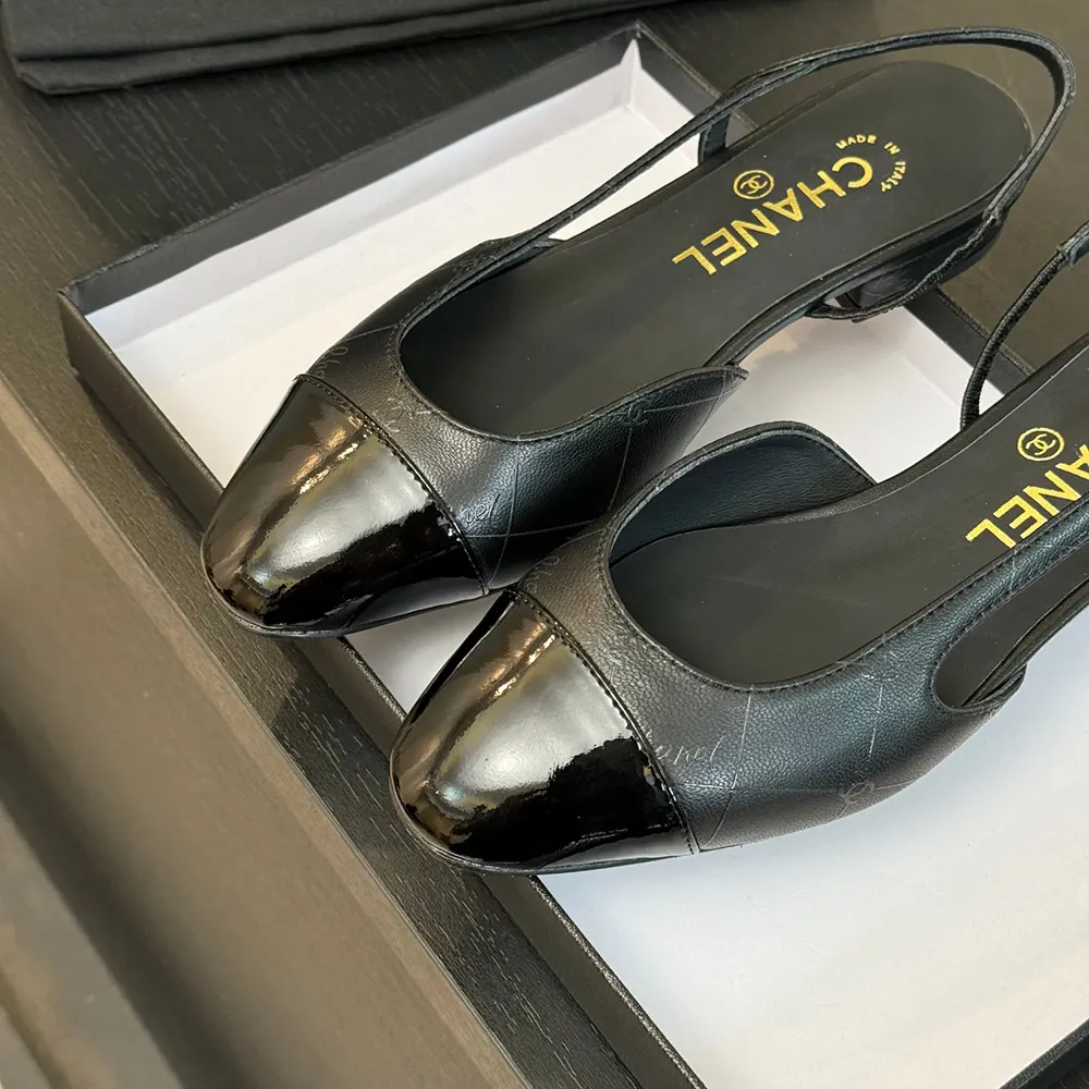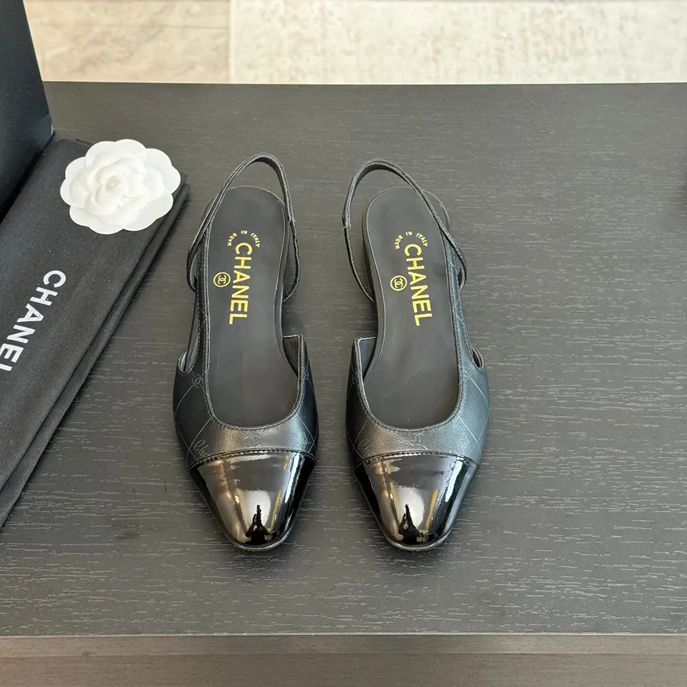 Chanel Dam Slingbacks Getskinn Grosgrain-Svart
