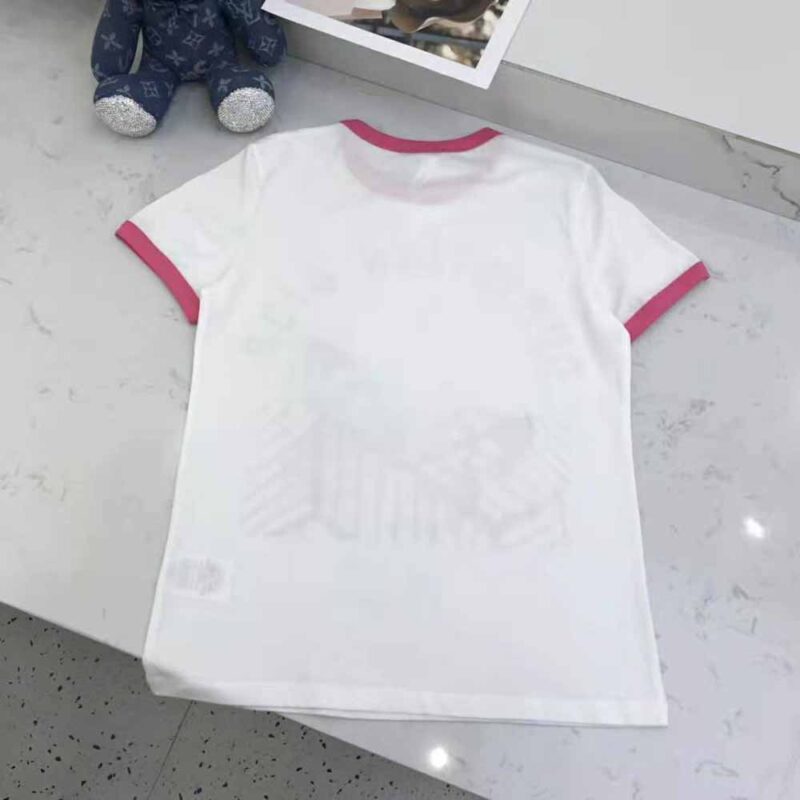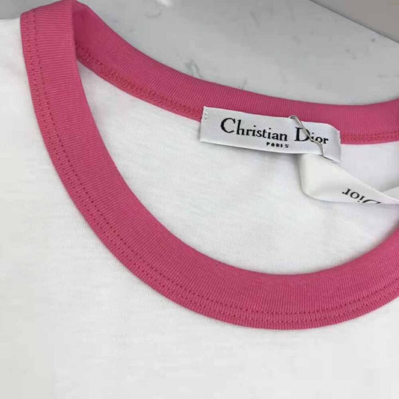 Dior Women T-shirt White Cotton Jersey with Fluorescent Pink D-Jungle Pop Motif