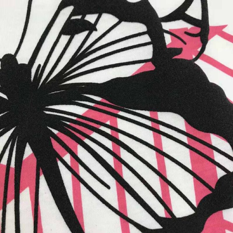 - The T-shirt is adorned with a butterfly print that embodies the collection’s colorful pop inspiration.