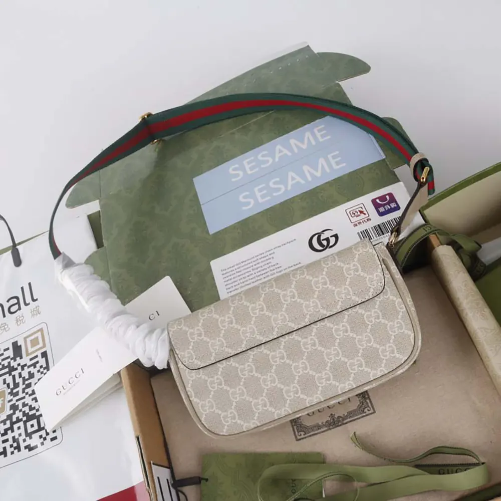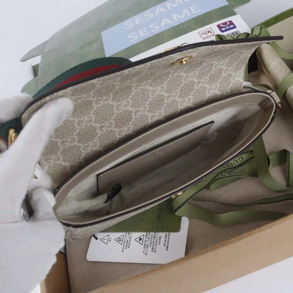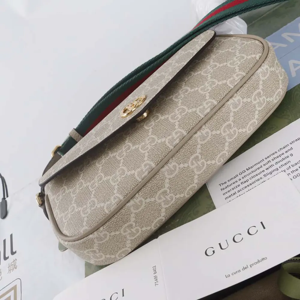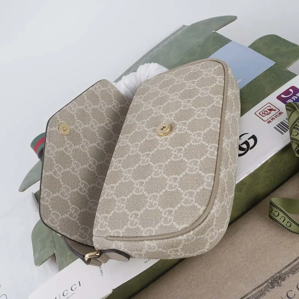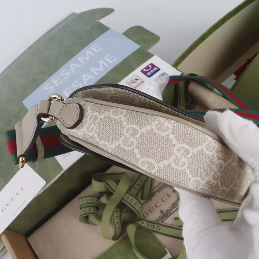 Gucci Women Ophidia Pochette Oatmeal Leather Trim 7649612ZGMN9643