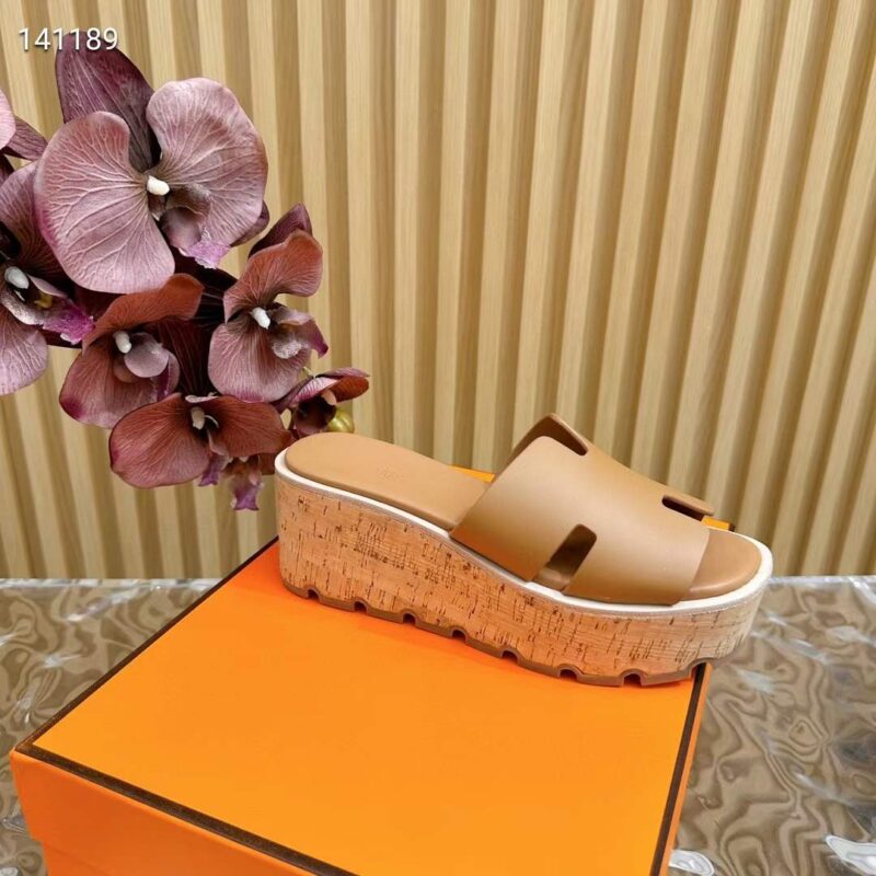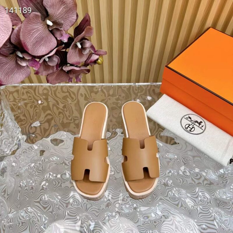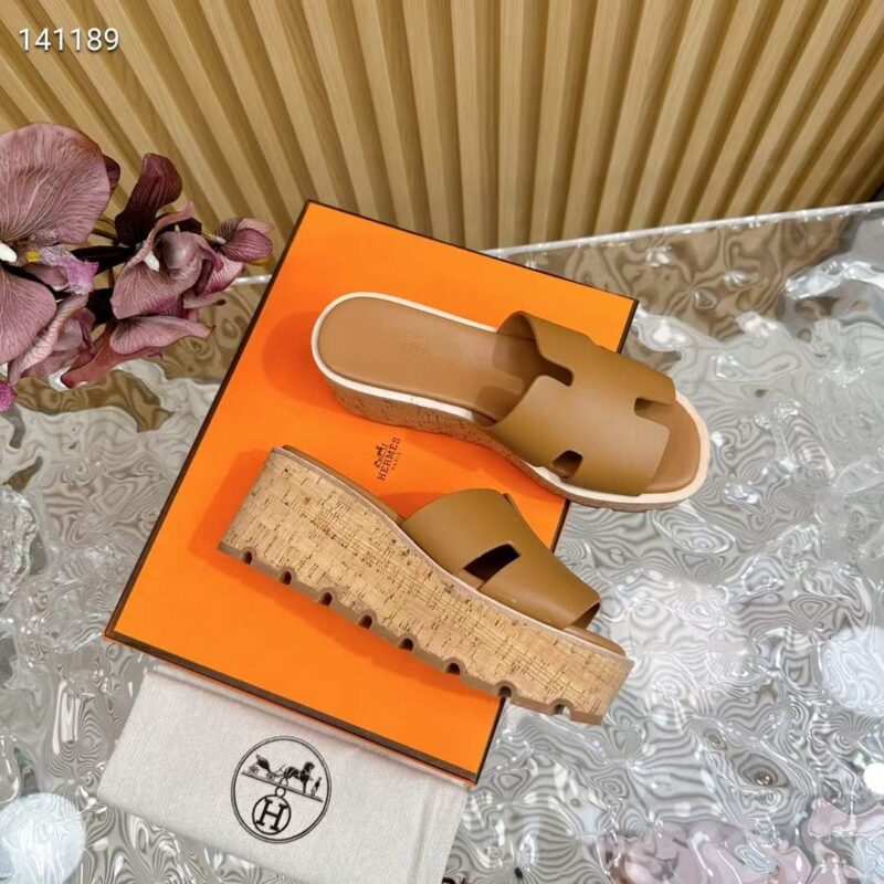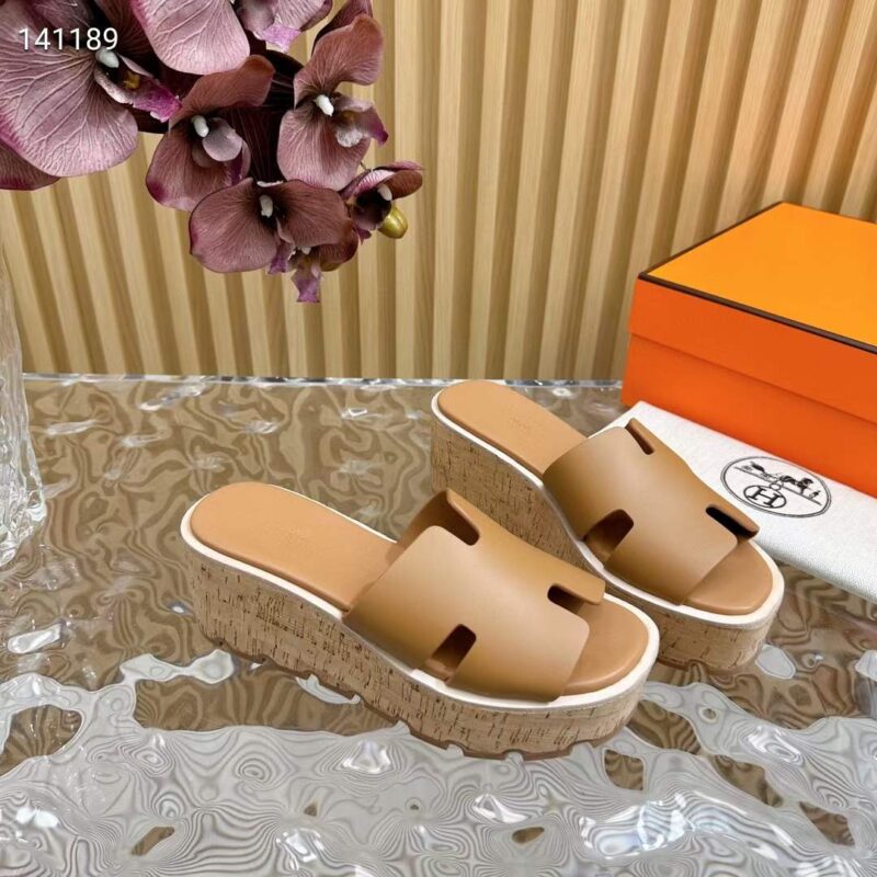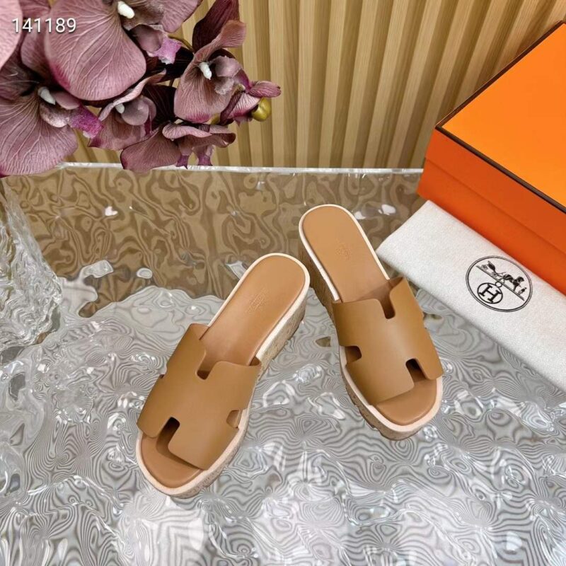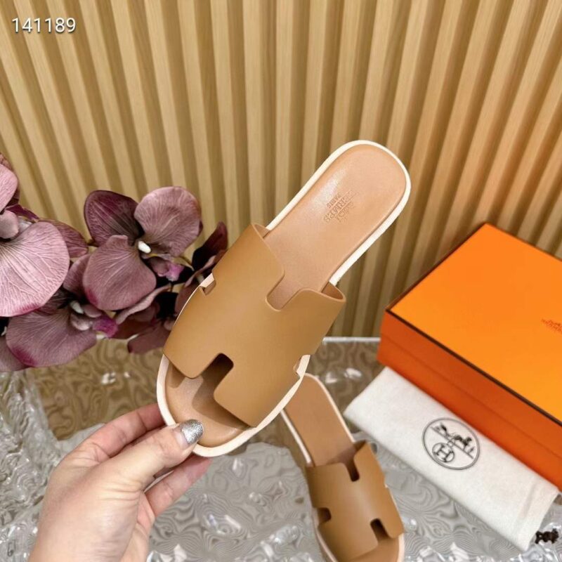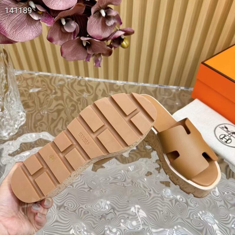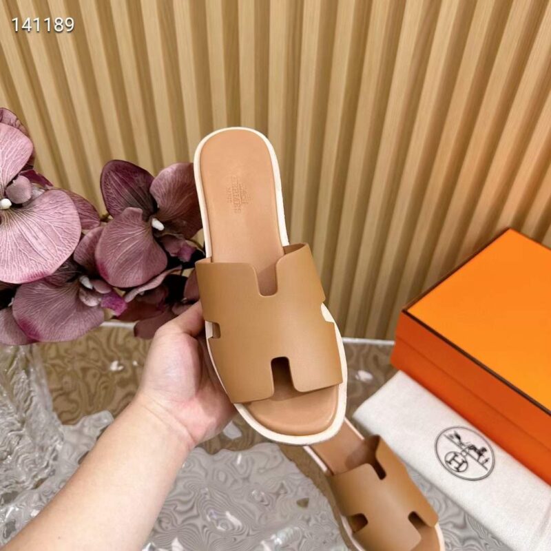Hermes Dam Eze 30 Sandal Naturlig Kalvskinn Brun Gummisula