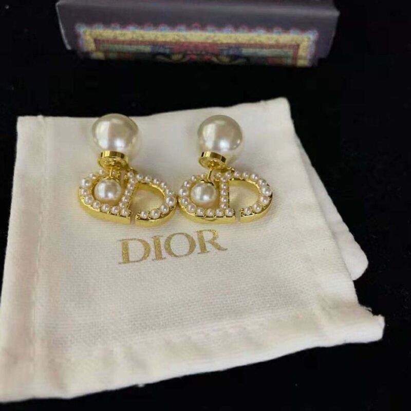Dior Women Tribales Earrings Gold-Finish Metal and White Resin Pearls