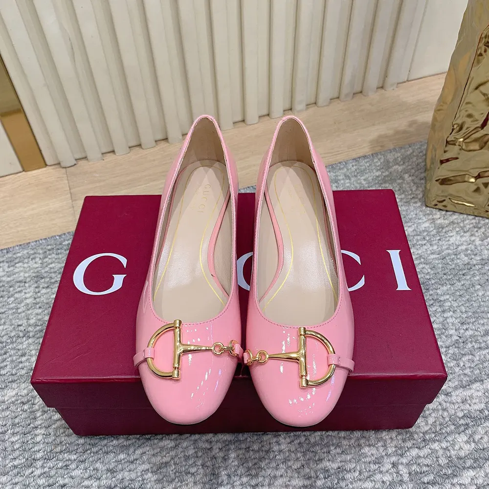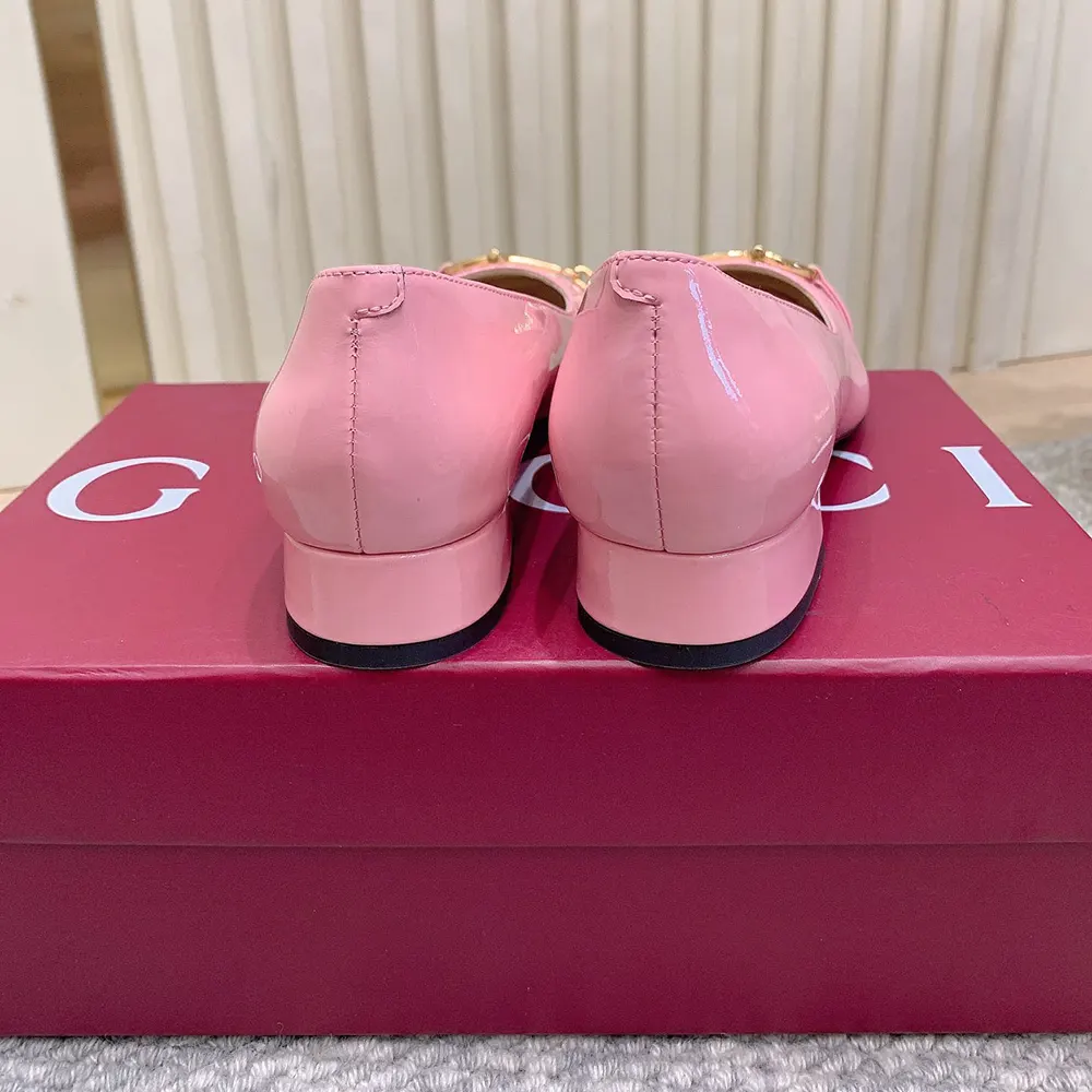 Gucci Women Ballet Flat With Half Horsebit Fuchsia Patent Leather