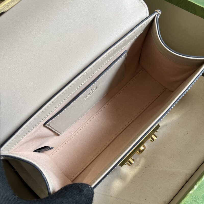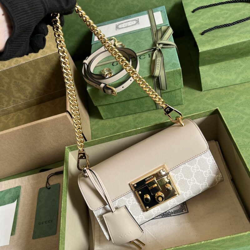 Gucci Women Padlock Mini Shoulder Bag Beige White GG Supreme Canvas