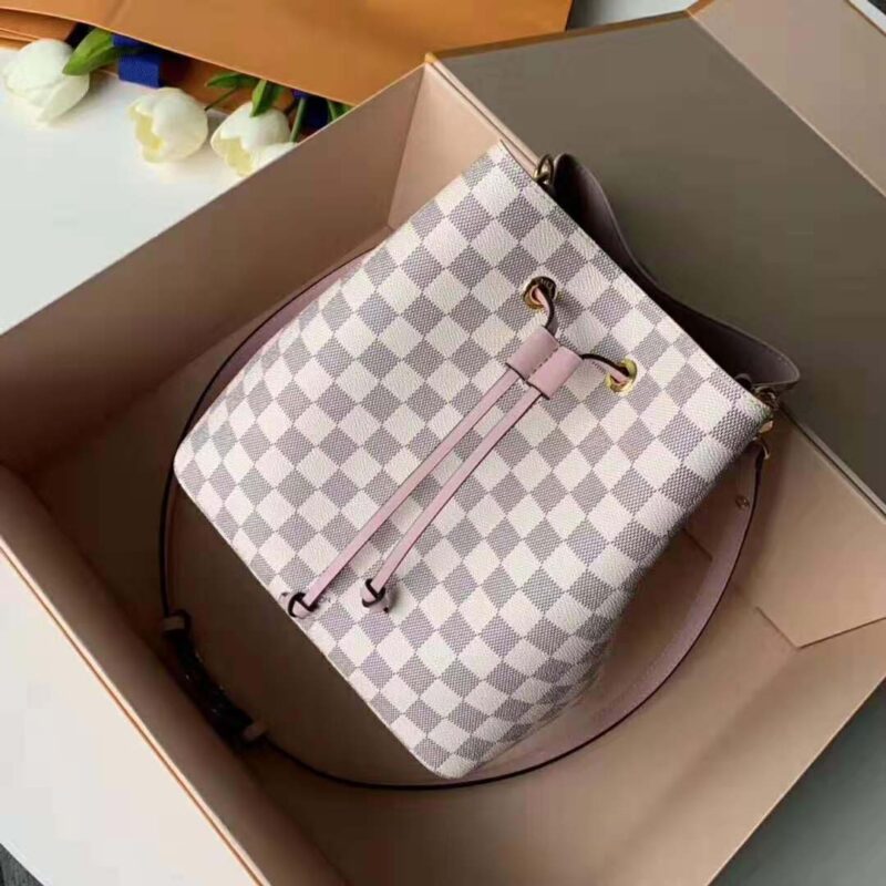 Louis Vuitton LV Women NéoNoé Bucket Bag in Damier Azur Canvas-Pink
