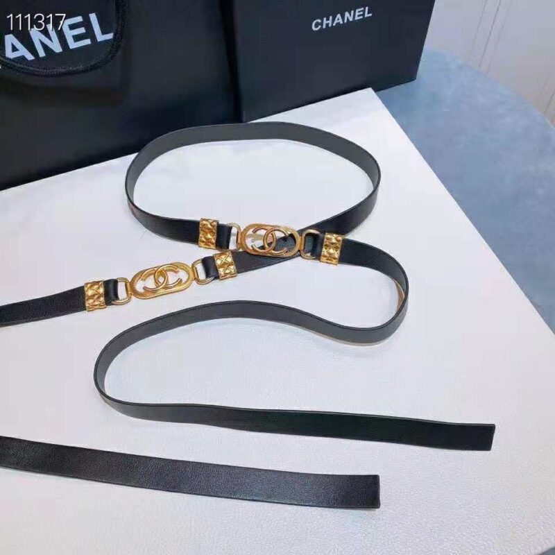 Chanel Women Lambskin & Gold Metal Black Belt