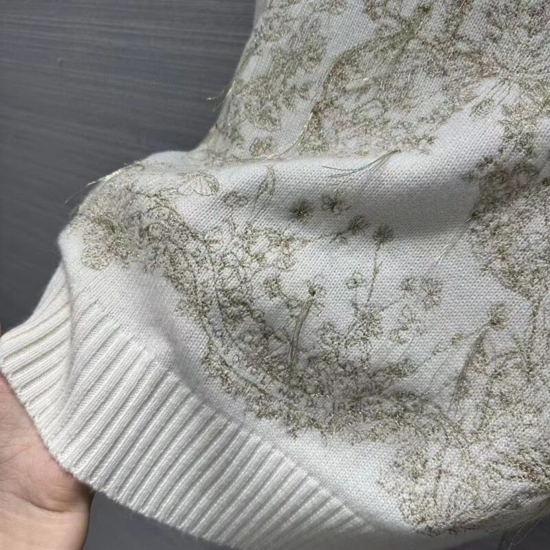 Dior Women CD Embroidered Sweater Gold-Tone White Cashmere Knit Butterfly Around the World Motif
