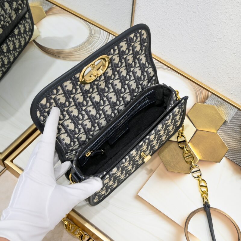 - Crafted in blue Dior Oblique jacquard, the rounded flap with delicate curves is punctuated by an antique gold-finish metal CD twist clasp inspired by the seal of a Christian Dior perfume bottle.