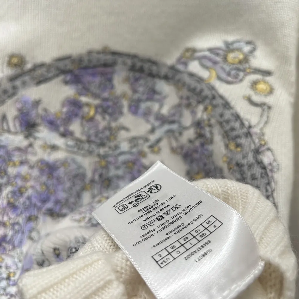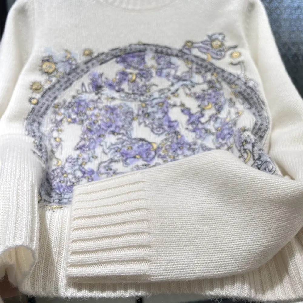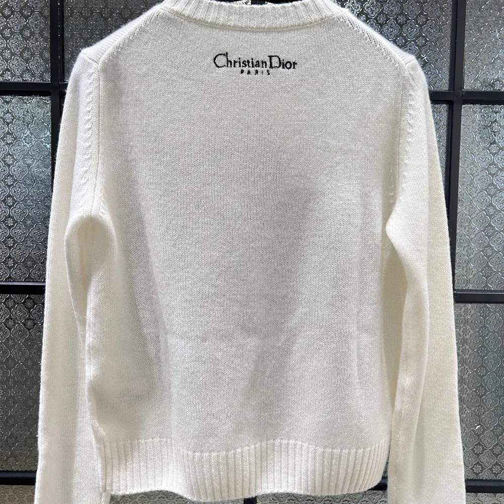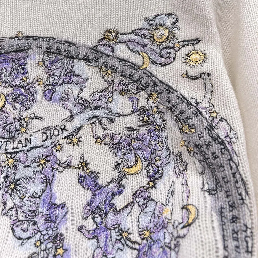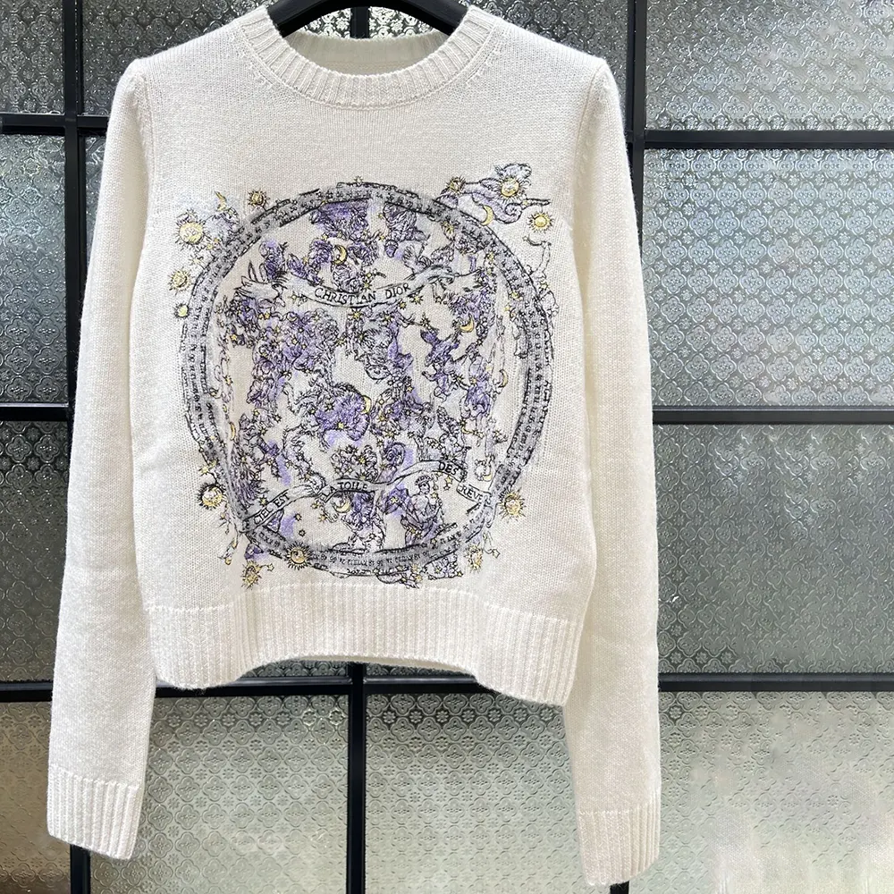 Dior Women Embroidered Sweater Ecru Cashmere Knit with Blue Dior Night of Dreams Motif