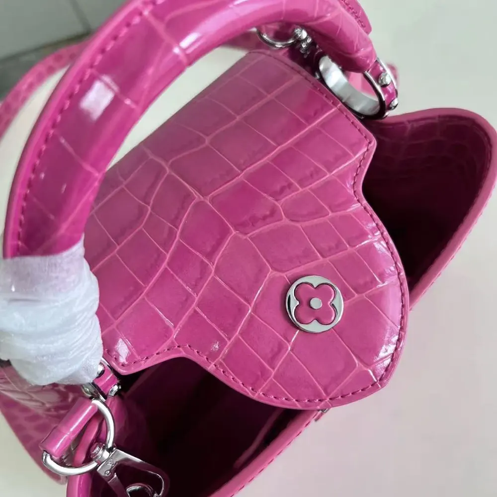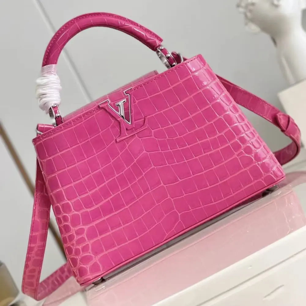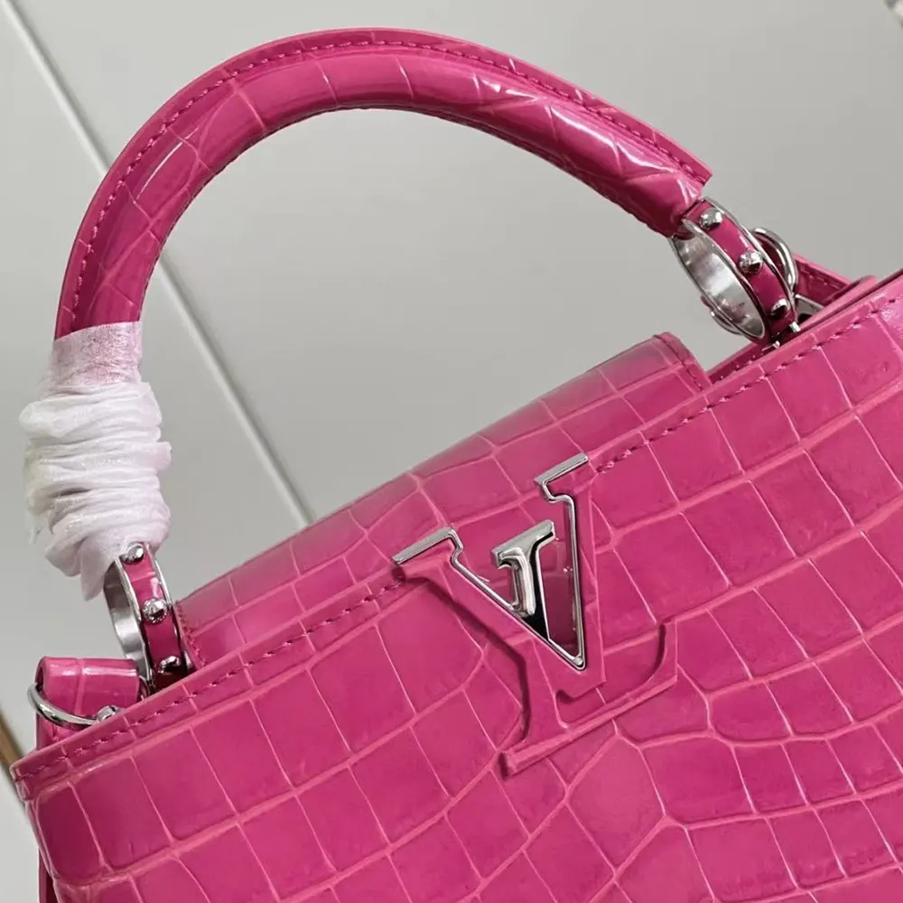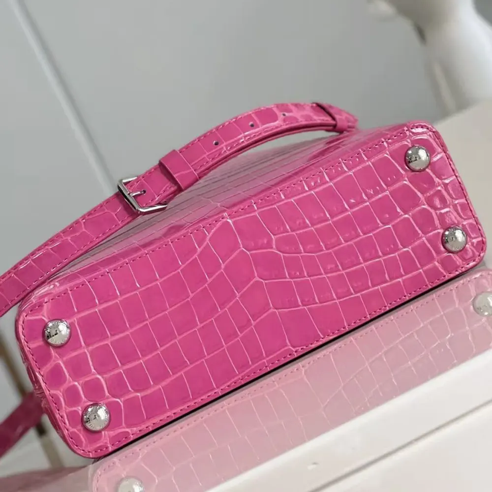 Louis Vuitton Women Capucines BB Handbag Pink Crocodilian Leather