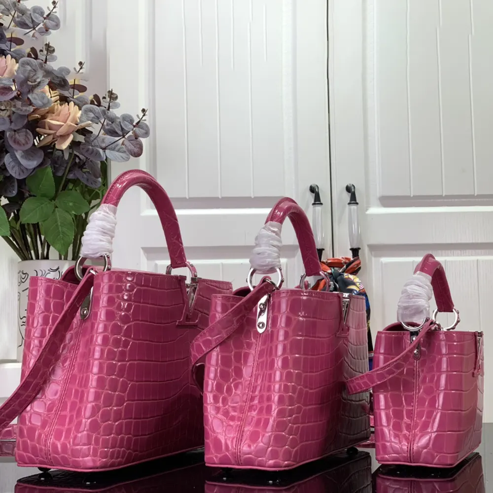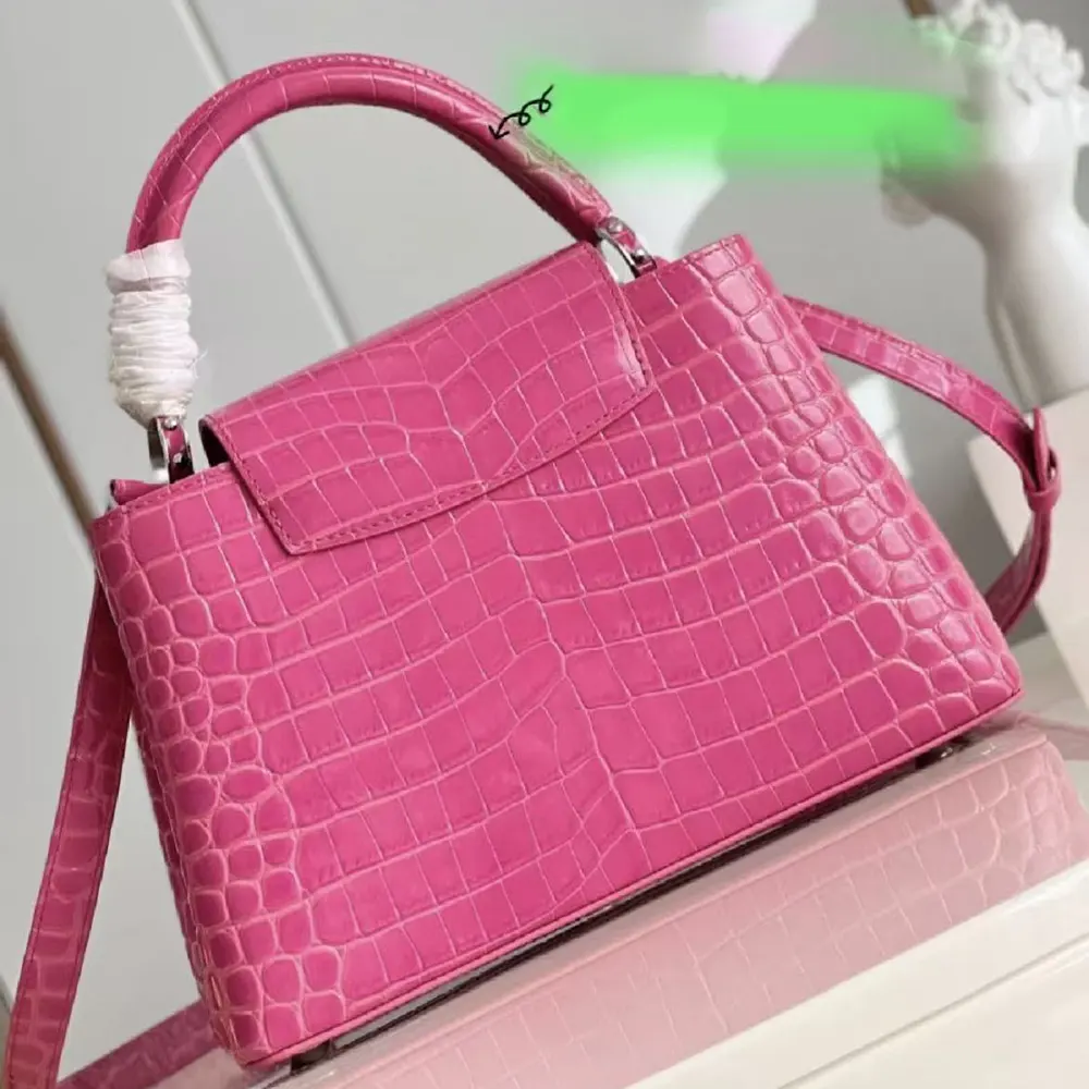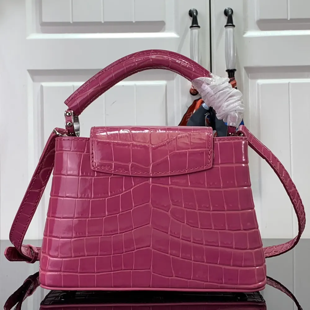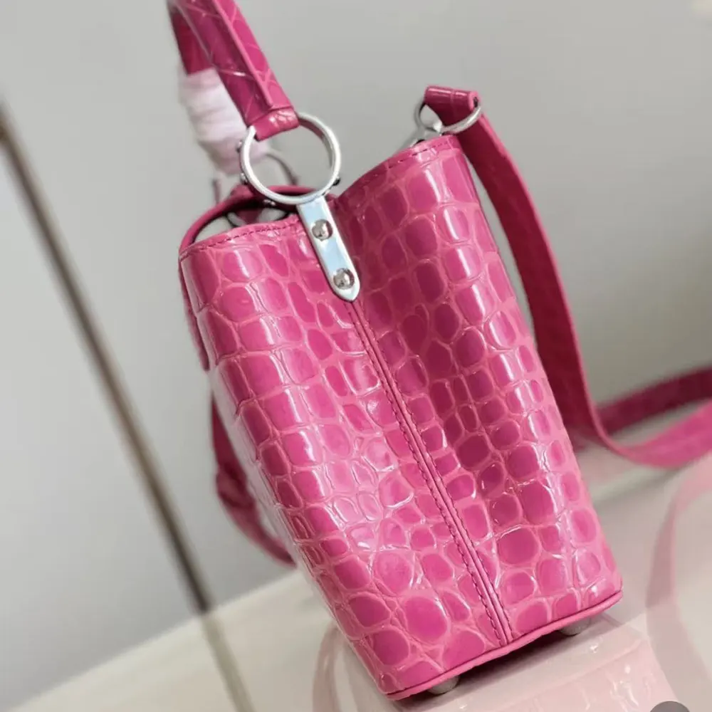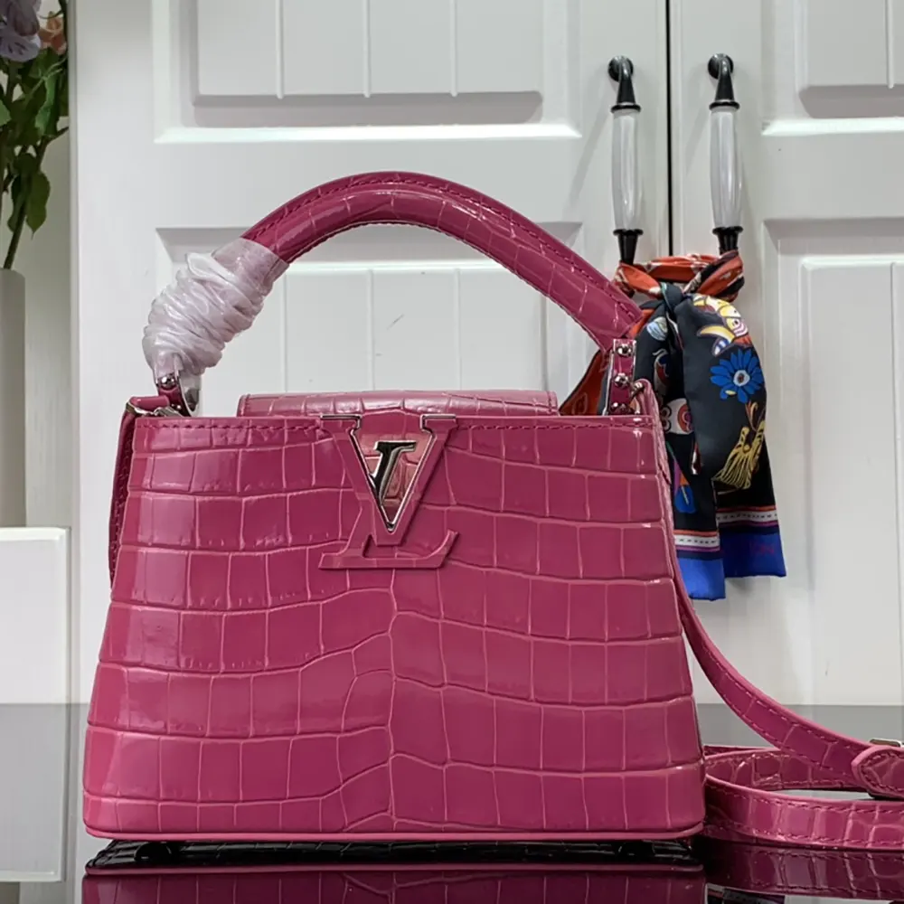 Louis Vuitton Women Capucines BB Handbag Pink Crocodilian Leather