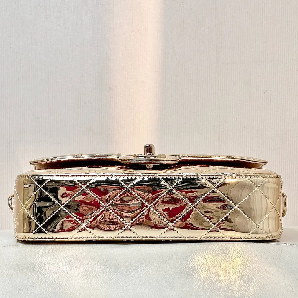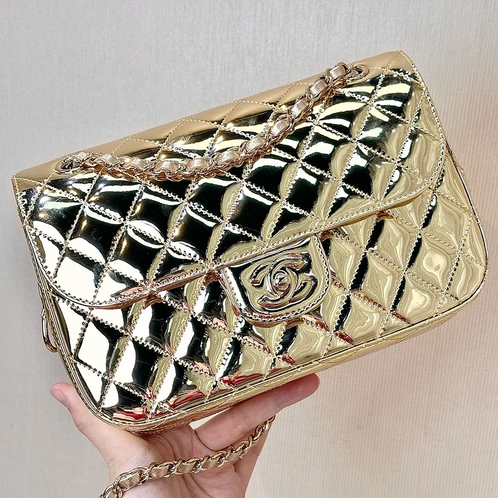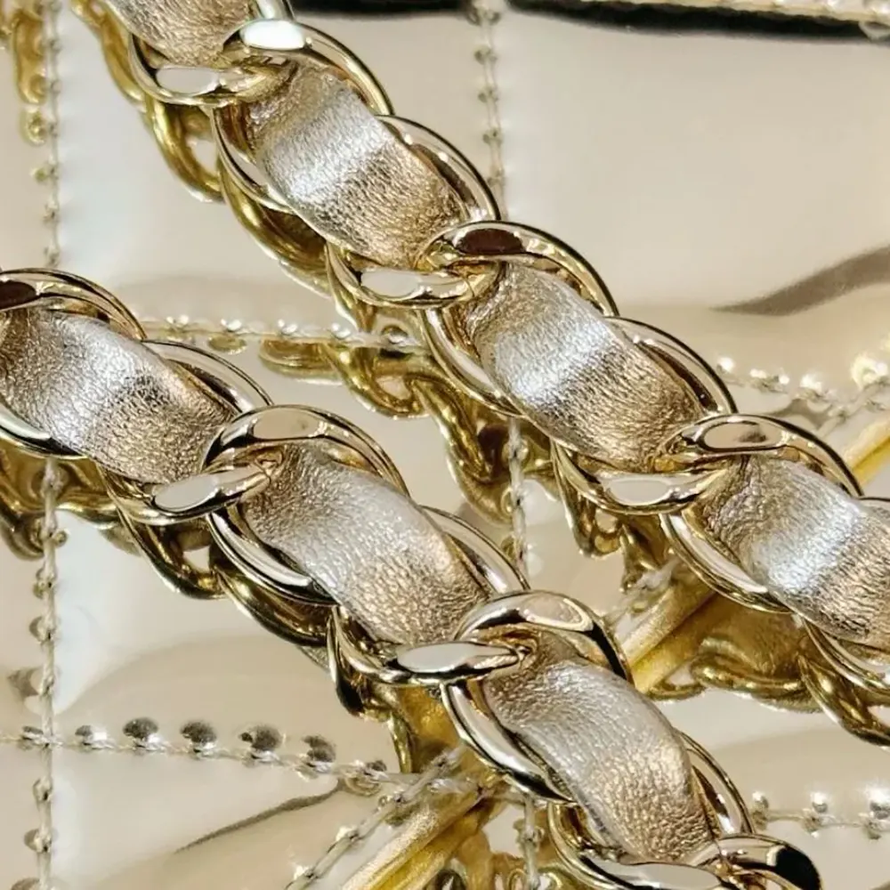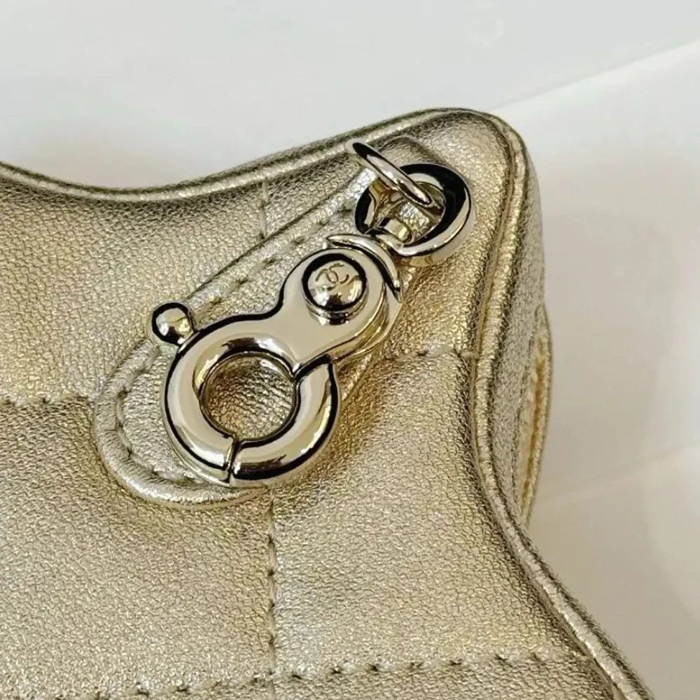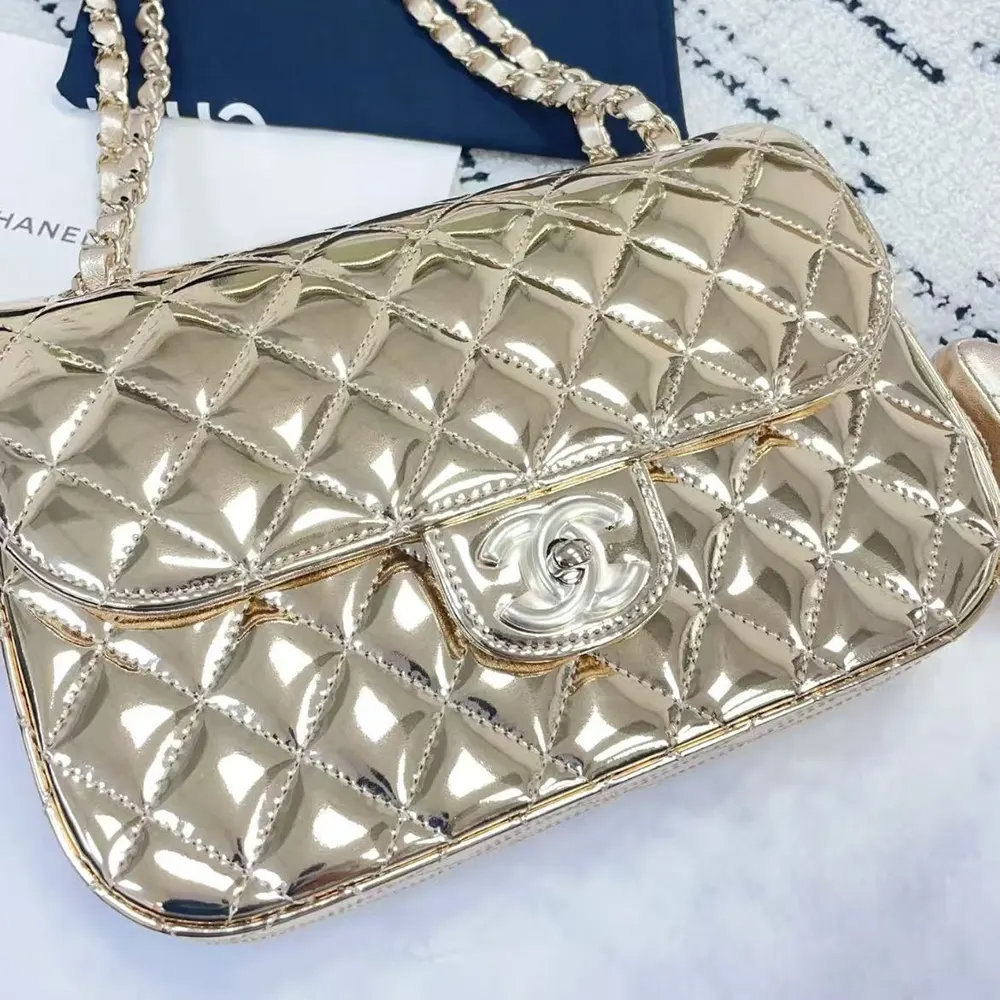 Chanel Women CC Flap Bag Star Coin Purse Mirror Calfskin Metallic Calfskin-Gold