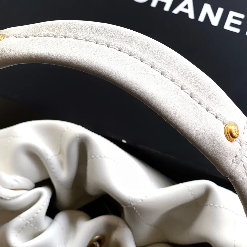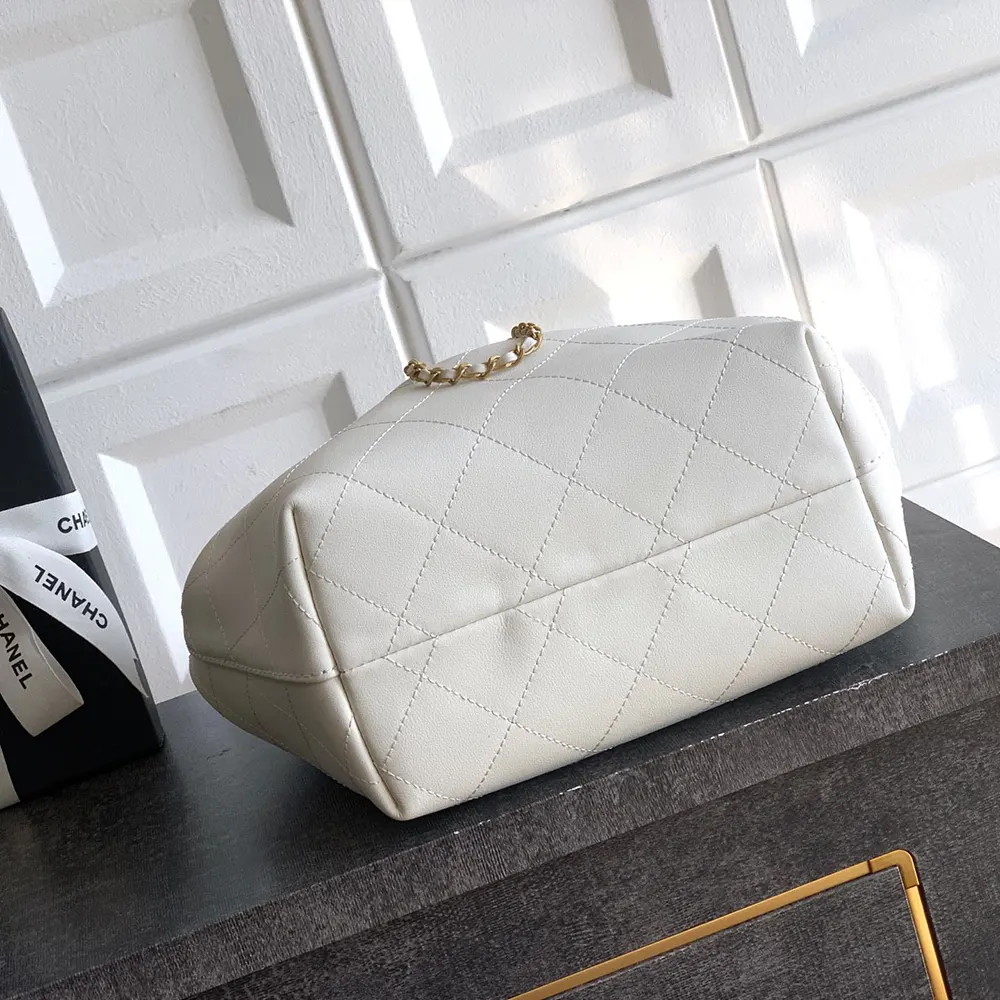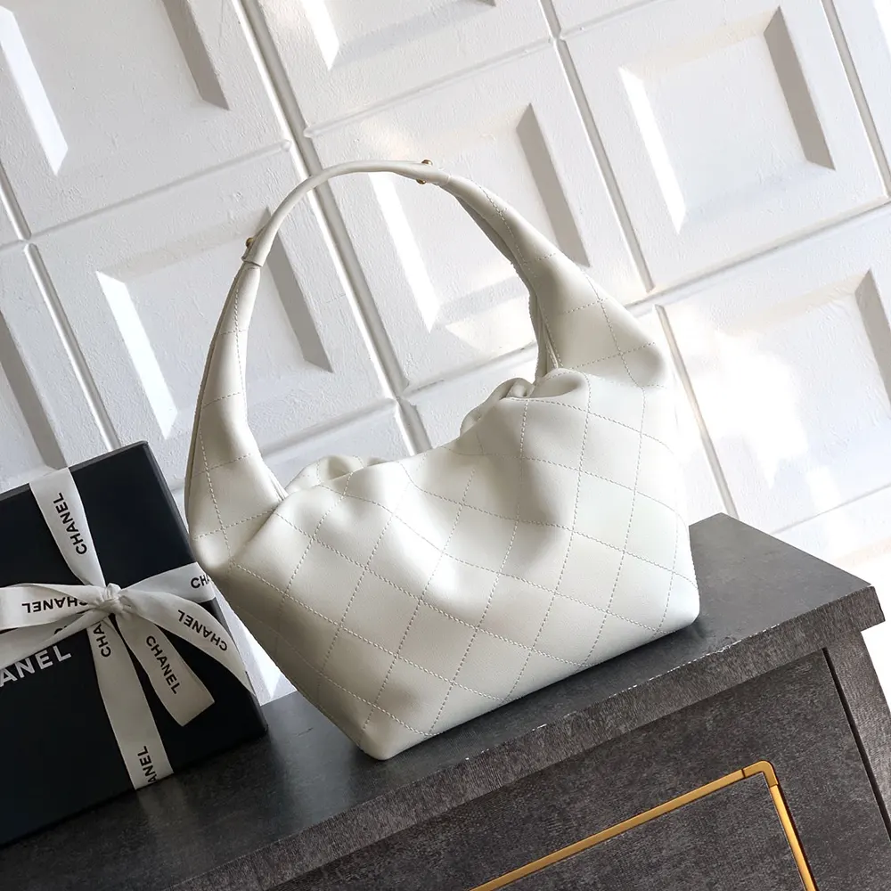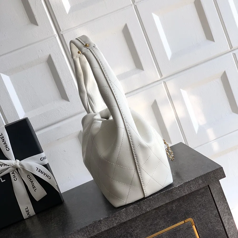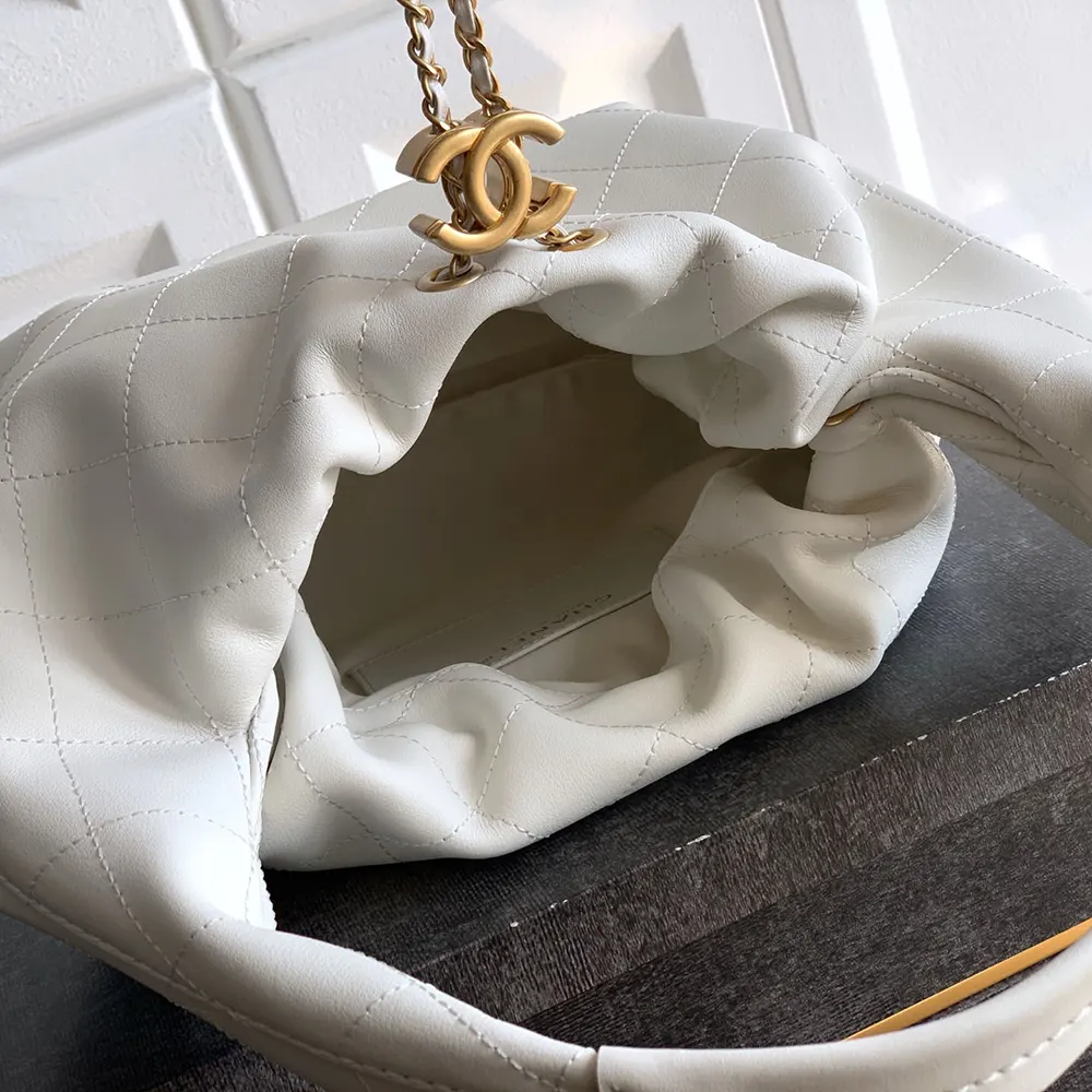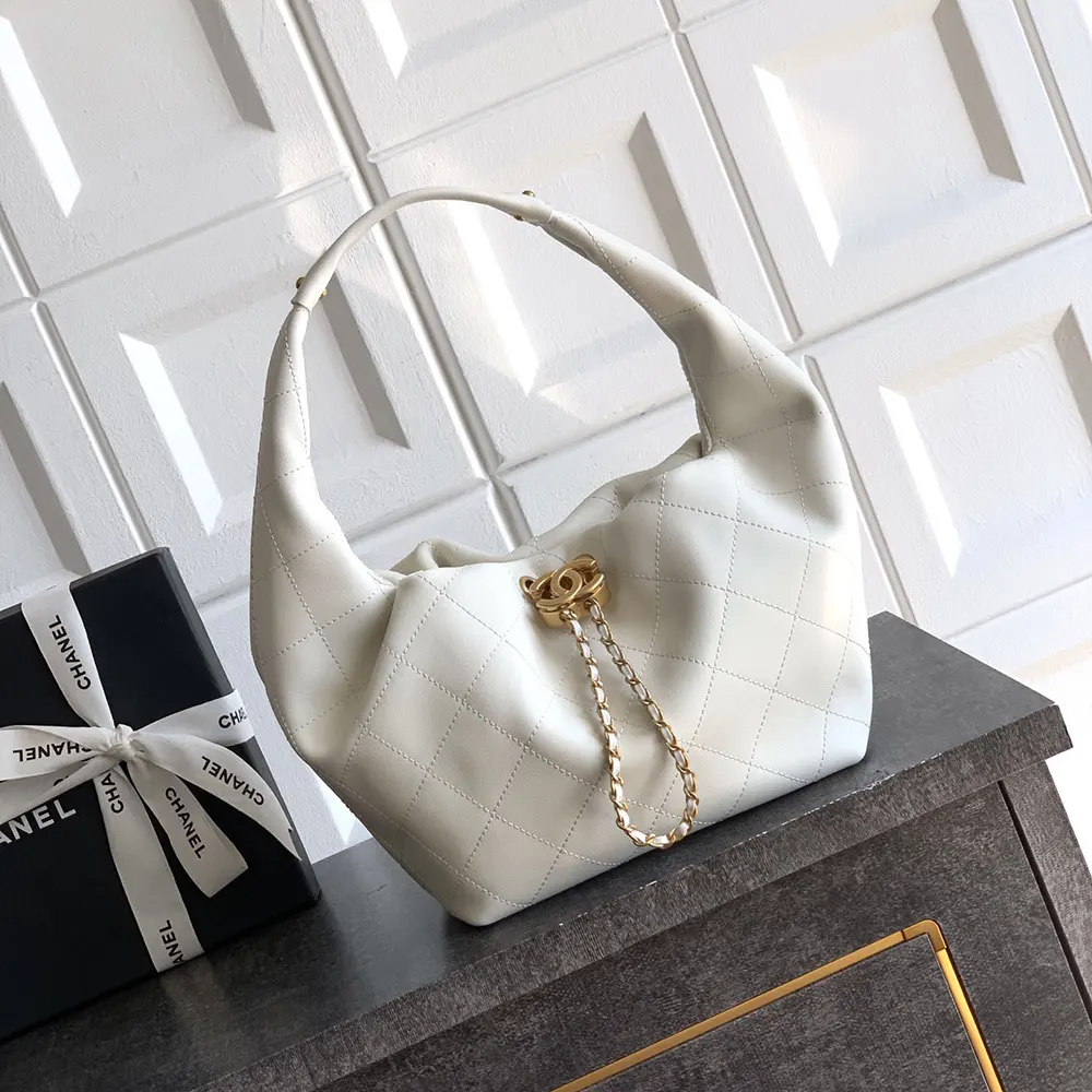 Chanel Women Hobo Handbag Calfskin Gold-Tone Metal-White AS5976