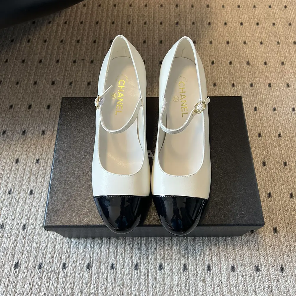 Chanel Women Mary Janes Lambskin Patent Calfskin & Imitation Pearls-White