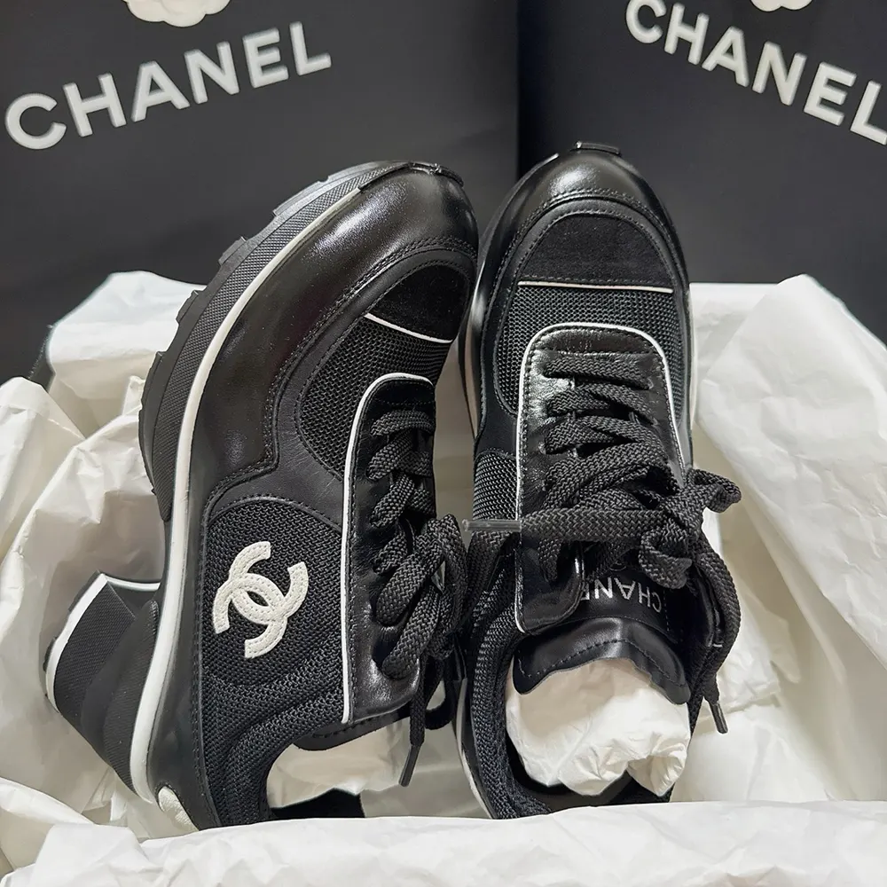Chanel Women Sneakers Mixed Fibers Shiny Calfskin & Suede Calfskin-Black
