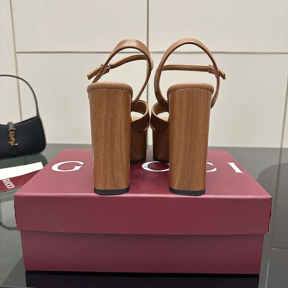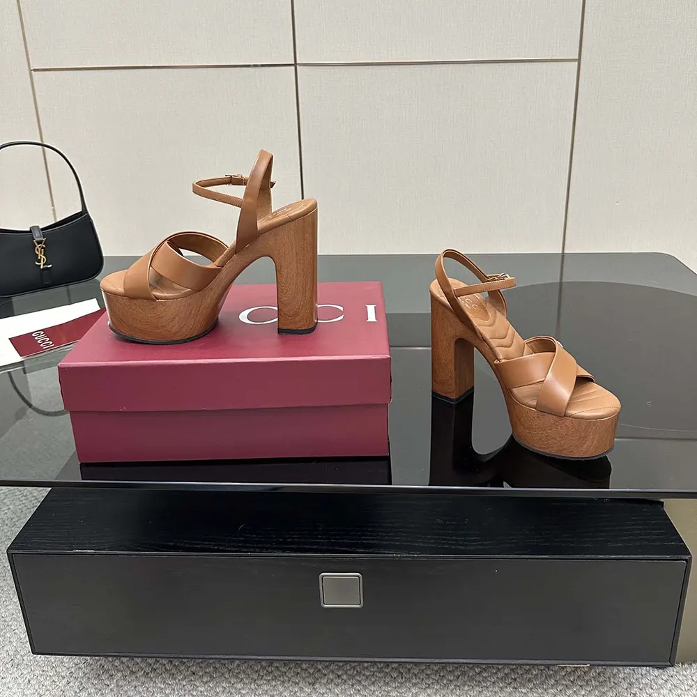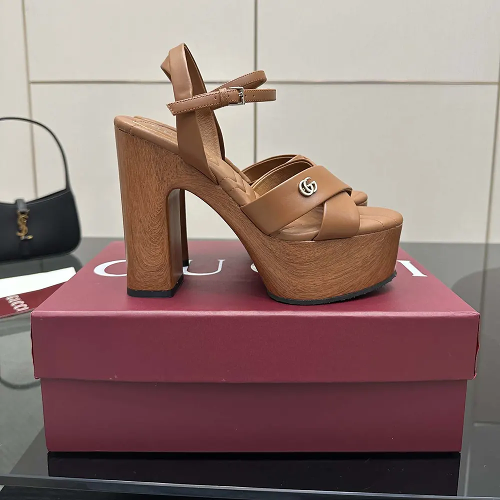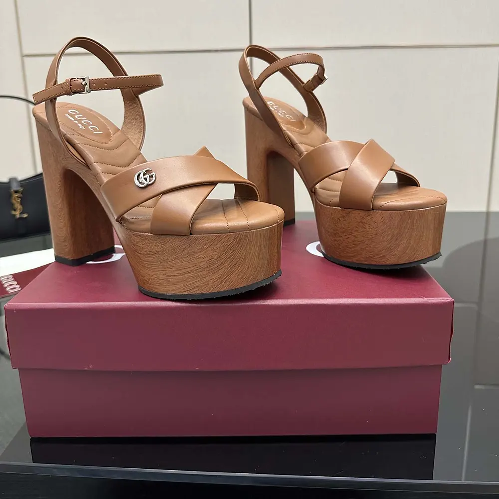 Sandalia de plataforma Gucci GG para mujer, color marrón, 835313BKO00