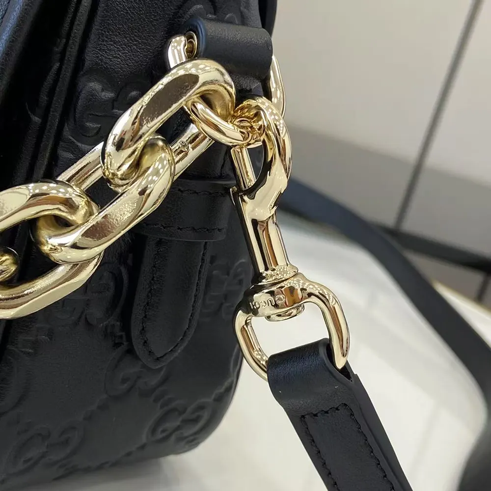 Gucci Women GG Emblem Small Shoulder Bag Black GG Leather