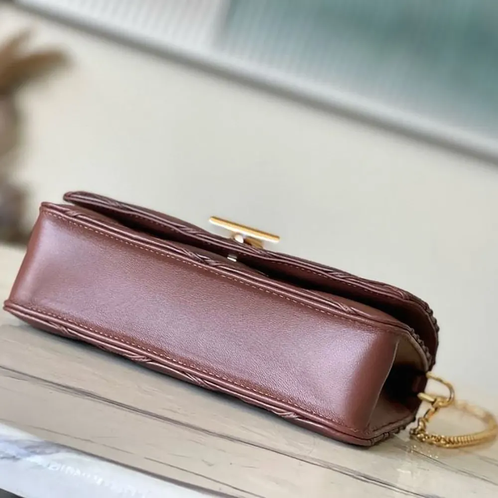 - It is crafted from precious quilted lambskin leather and is elevated with signature details including an LV lock and an interlaced round sliding chain that offers multiple styling options.