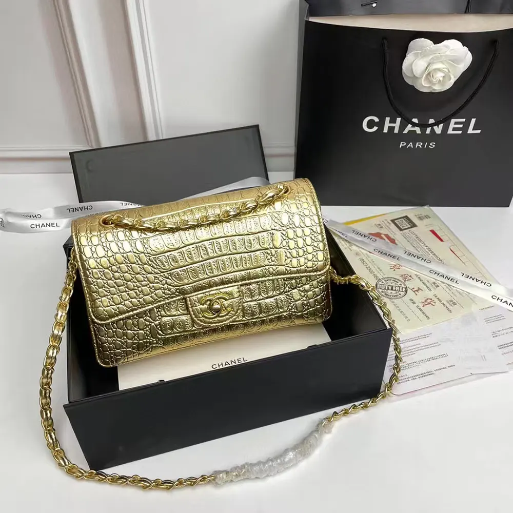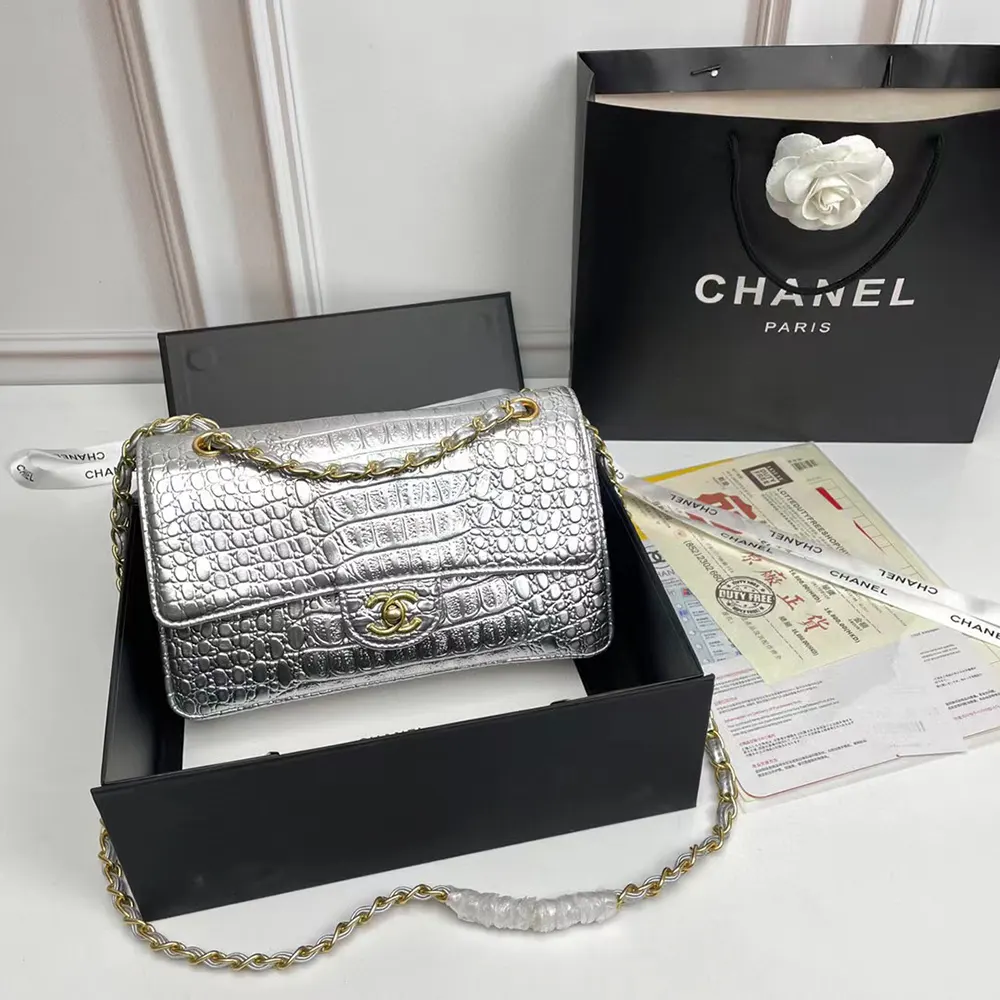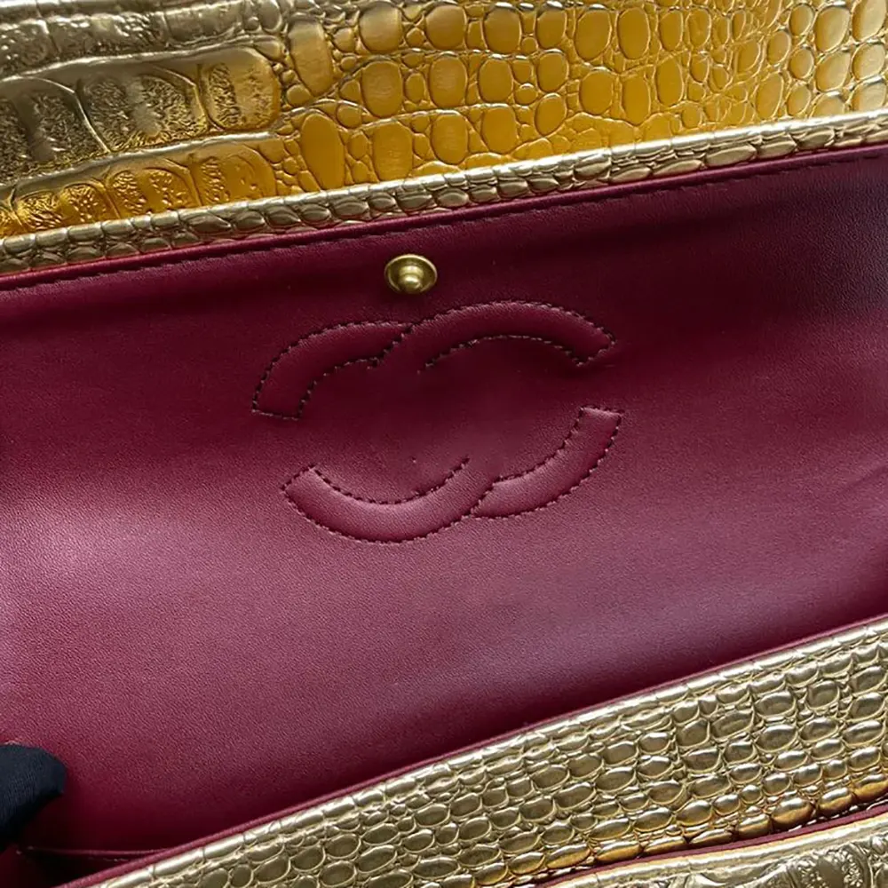 Chanel Women 19A Crocodile Embossed Small Classic Flap Bag