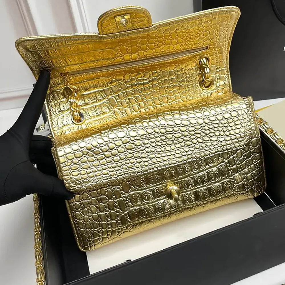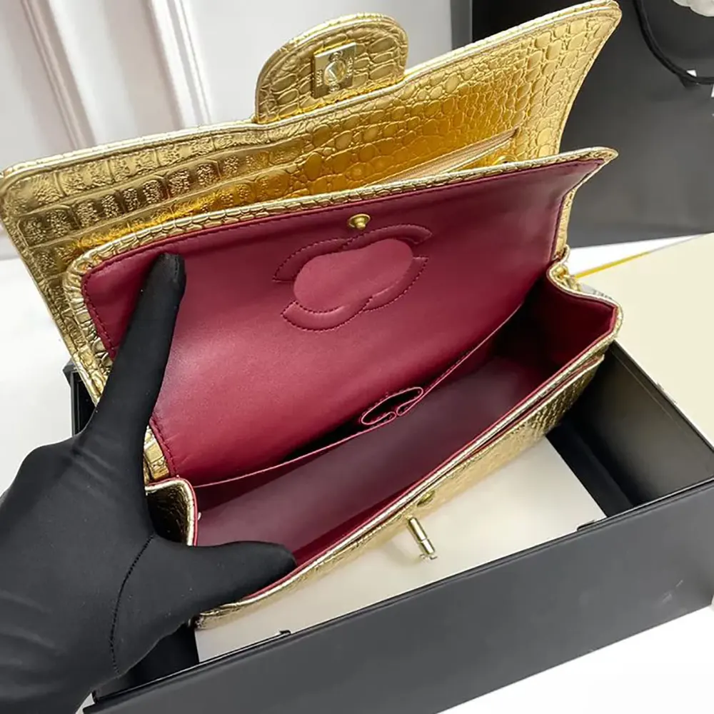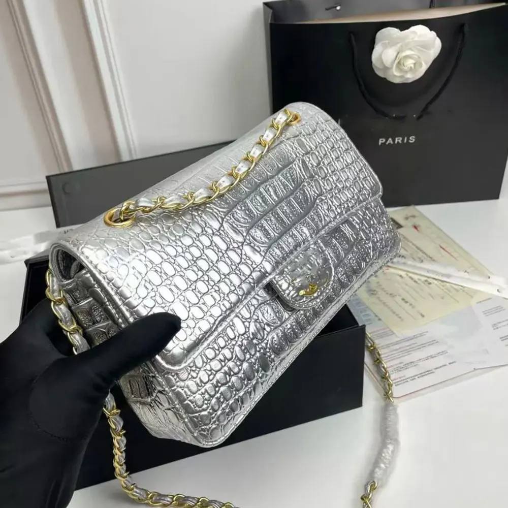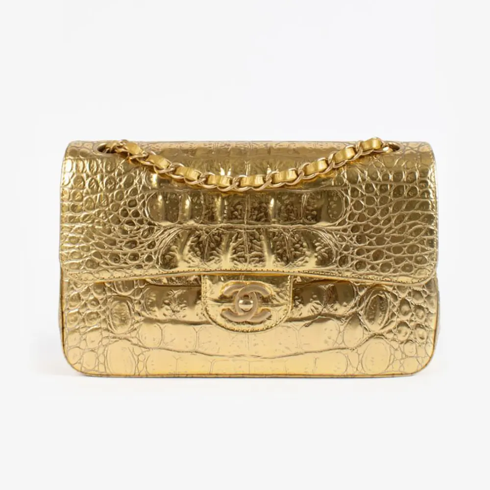 Chanel Women 19A Crocodile Embossed Small Classic Flap Bag