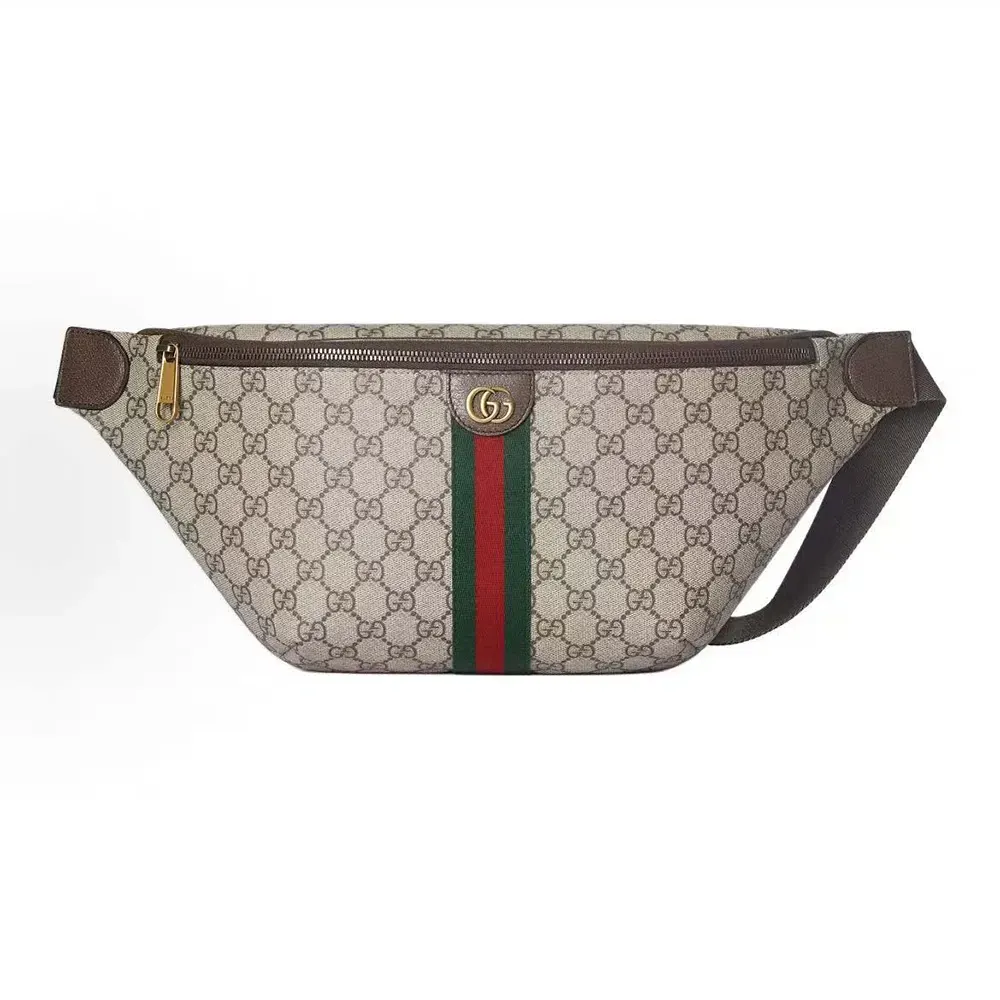 Gucci Men Ophidia Belt Bag Dark Brown Leather Trim