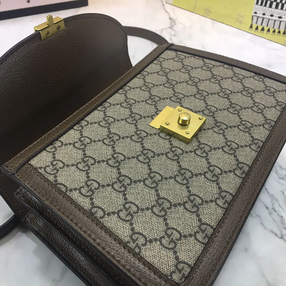 - The vintage influenced square shape is accentuated by the House Web stripe and Double G hardware—a contemporary take on a Gucci archival belt buckle from the ’70s.